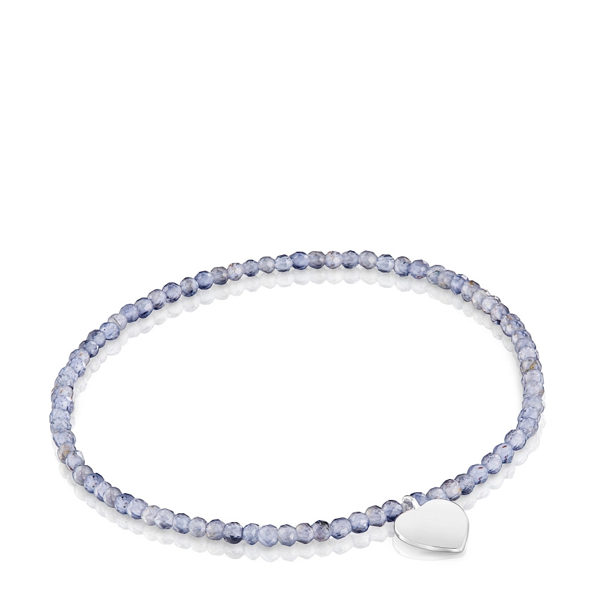 Браслет TOUS Motifs зі срібла 925 проби та ограненими круглими кульками з іоліту і мотивом серця. Довжина браслета: 17 см.