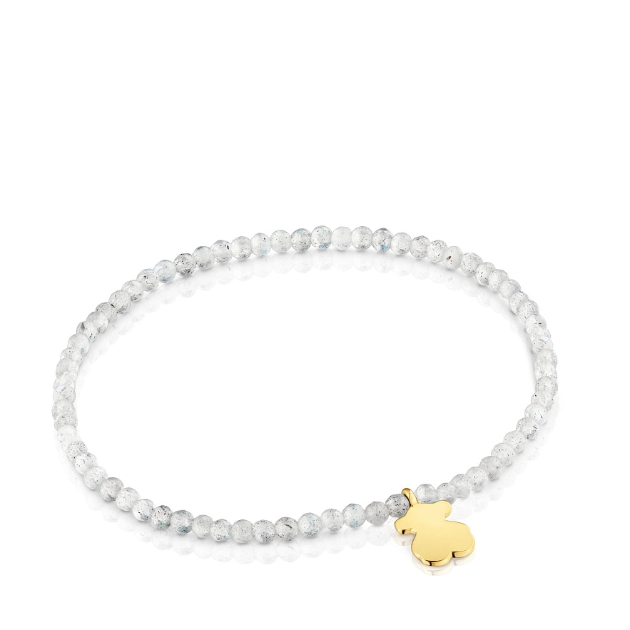Браслет TOUS Motifs зі срібла 925 проби з покриттям Vermeil з ограненими круглими кульками з сірого лабрадориту та мотивом ведмедика. Довжина браслета: 17 см.