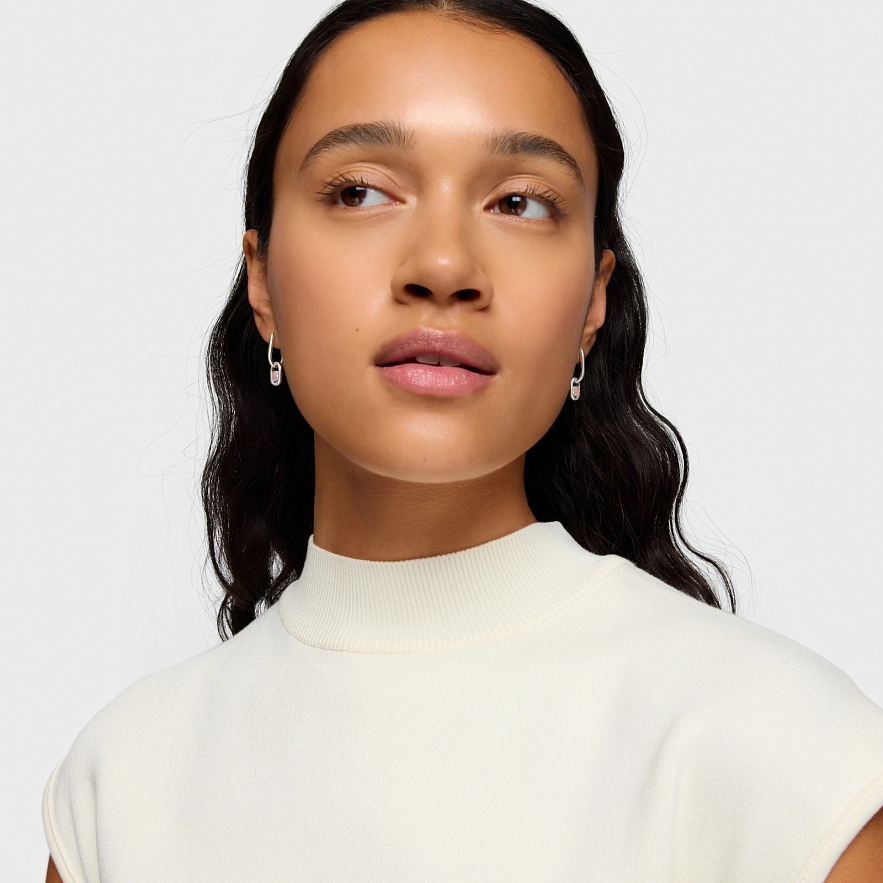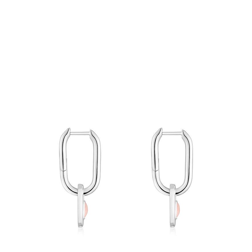 Сережки-кільця TOUS Camille зі срібла 925 проби та рожевого кварцу у формі фасетованого ведмедика. Розмір сережок: 25 мм.