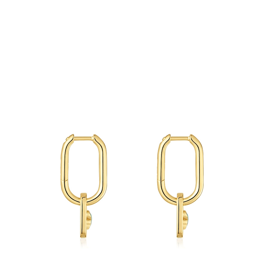 Сережки-кільця TOUS Camille зі срібла 925 проби з покриттям з 18-каратного жовтого золота та амазонітом у формі фасетованого ведмедя. Розмір сережок: 25 мм. Виріб виготовлений із срібла 925 проби з покриттям із золота 18-23 карат і товщиною 3 мікрон. Така якість гарантує більшу довговічність прикраси.