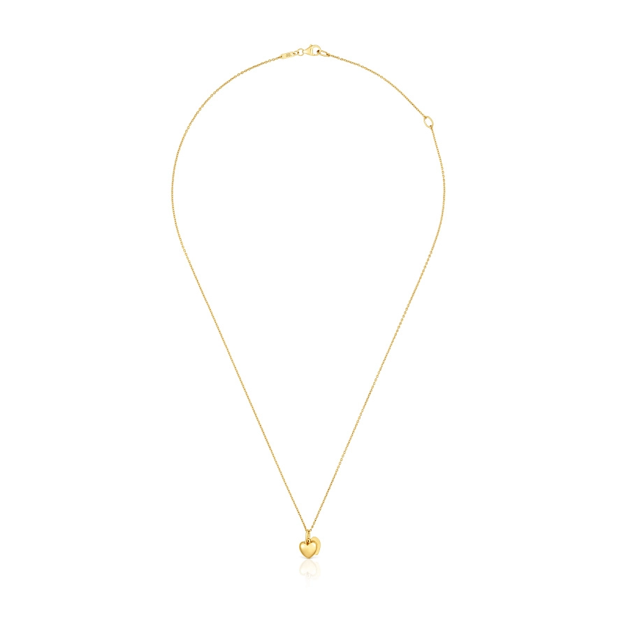 Намисто TOUS Flechazo з 14-каратного жовтого золота з мотивом подвійного серця. Розмір мотиву: 7 мм. Довжина намиста: 45 см. Застібка-метелик.