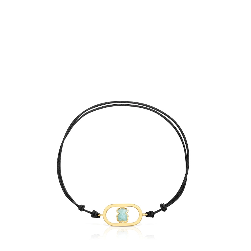 Чорний нейлоновий браслет TOUS Camille зі срібла 925 проби з 18-каратним золотим покриттям і амазонітом.