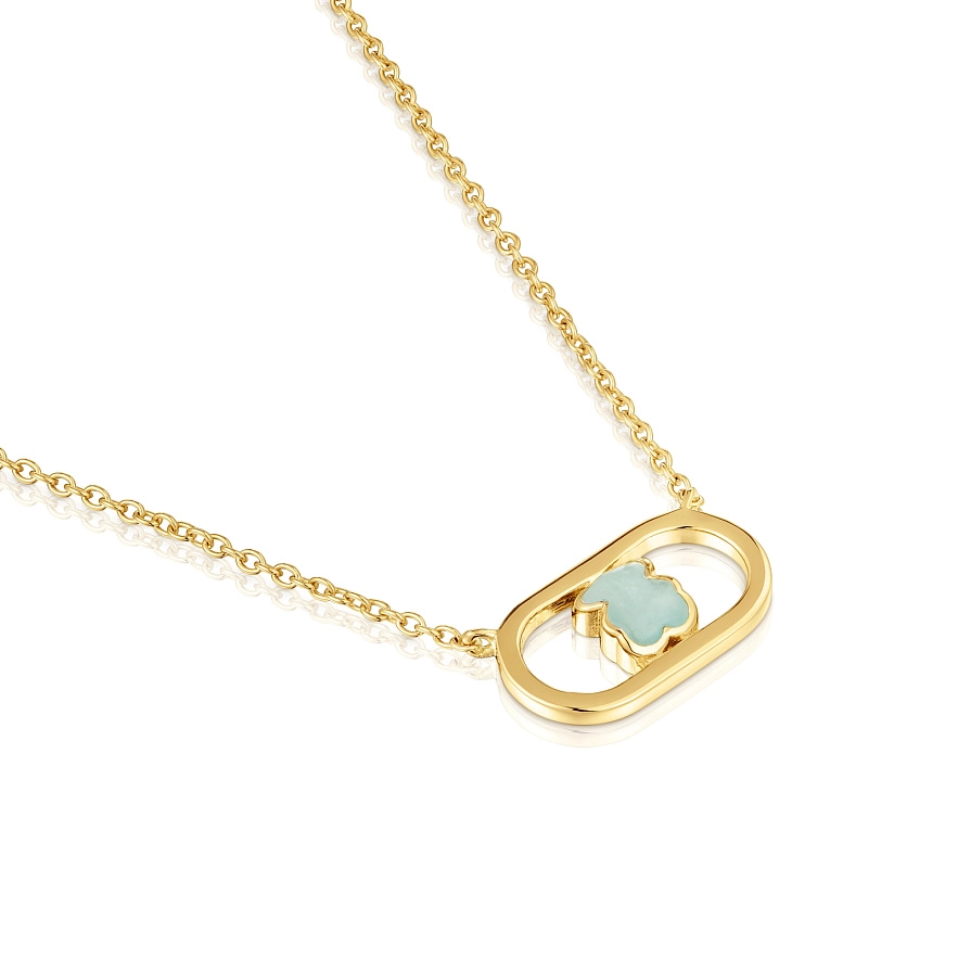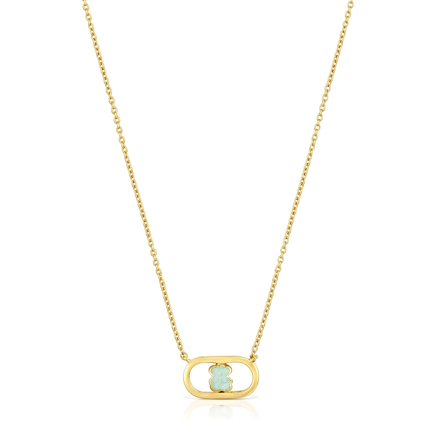 Намисто TOUS Camille зі срібла 925 проби з покриттям з 18-каратного жовтого золота та амазонітом у формі фасетованого ведмедя. Довжина намиста: 45 см. Застібка-карабін. Виріб виготовлений із срібла 925 проби з покриттям із золота 18-23 карат товщиною 3 мікрон. Така якість гарантує більшу довговічність прикраси.