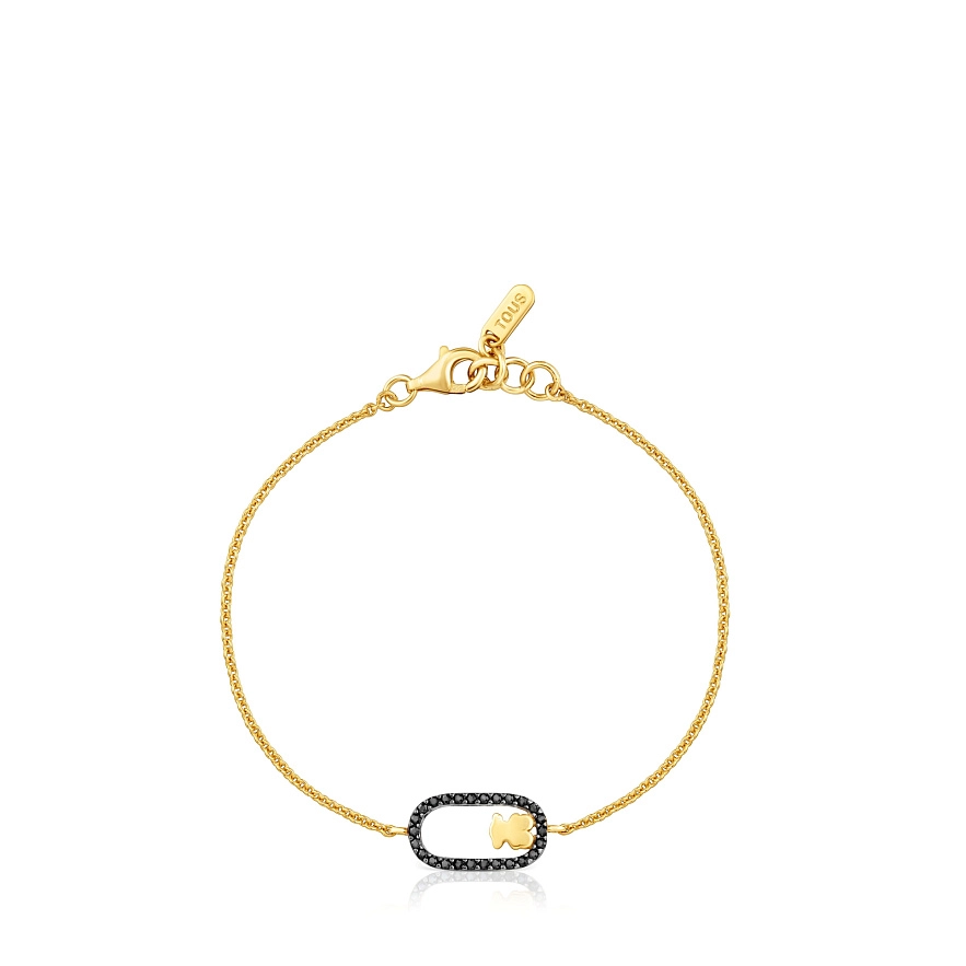 Браслет TOUS Camille зі срібла 925 проби з 18-каратним золотим покриттям та круглими фасетованими шпінелями чорного кольору. Довжина браслета: 17,5 см. Застібка-карабін. Виріб виготовлений із срібла 925 проби з 18-23-каратним золотим покриттям товщиною 3 мікрон. Така якість гарантує більшу довговічність прикраси.