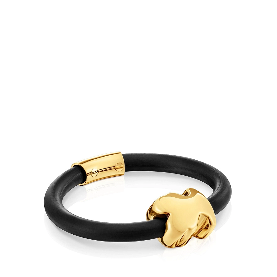 Каблучка TOUS Bold Motif з мотивом ведмедя з 14-каратного жовтого золота та чорного каучуку. Розмір мотиву: 7 мм.
