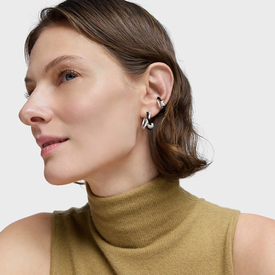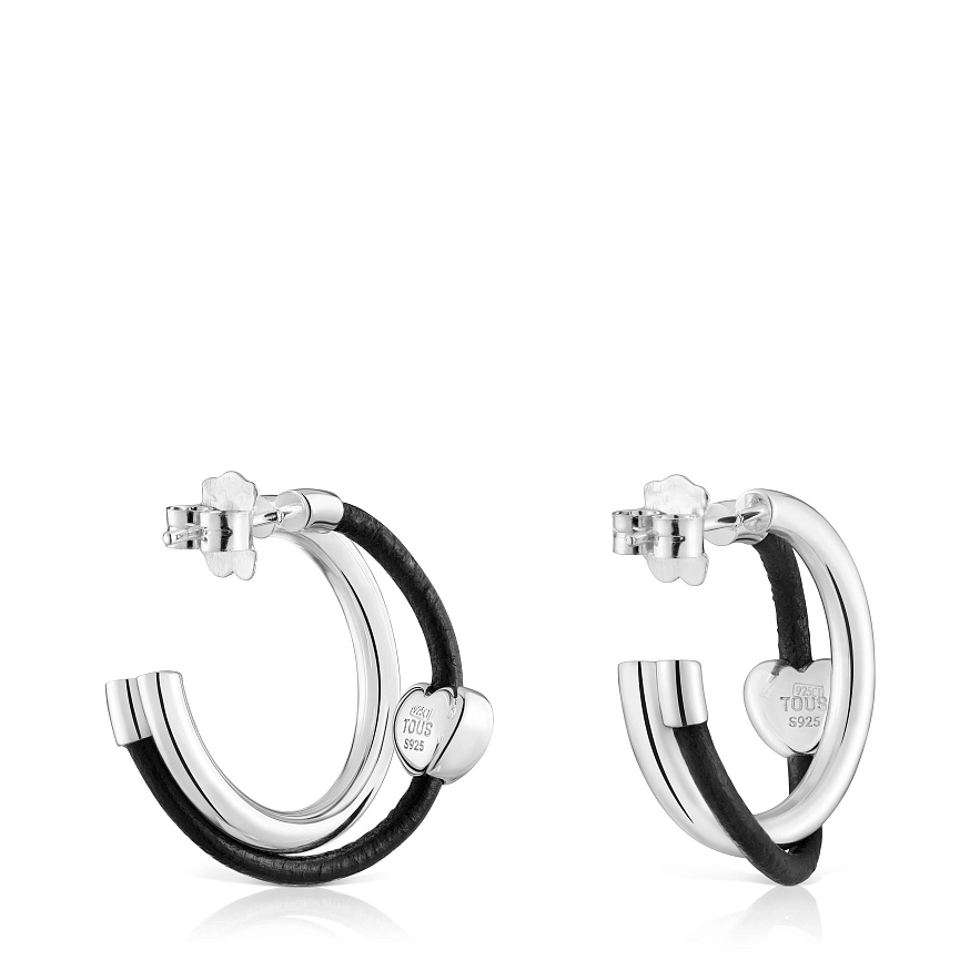 Сережки-кільця TOUS Bold Motif зі срібла та чорного каучуку з мотивом серця. Розмір сережок: 24 мм. Застібка-пусет.