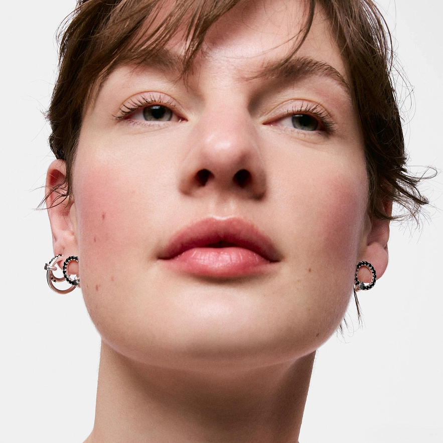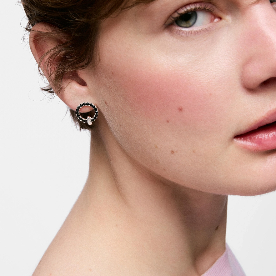 Сережки TOUS Straight зі срібла з трьома колами та огранованими круглими чорними шпінелями. Розмір сережок: 14 мм. Застібка-пусет.