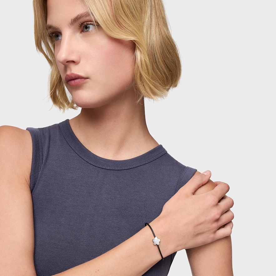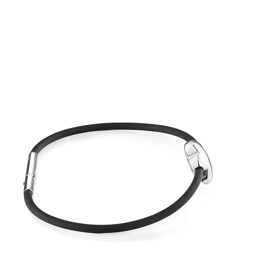 Браслет TOUS Bold Motif зі срібла та чорного каучуку з мотивом квітки. Довжина браслета: 17,5 см. Розмір підвіски: 12 мм. Подвійна застібка.