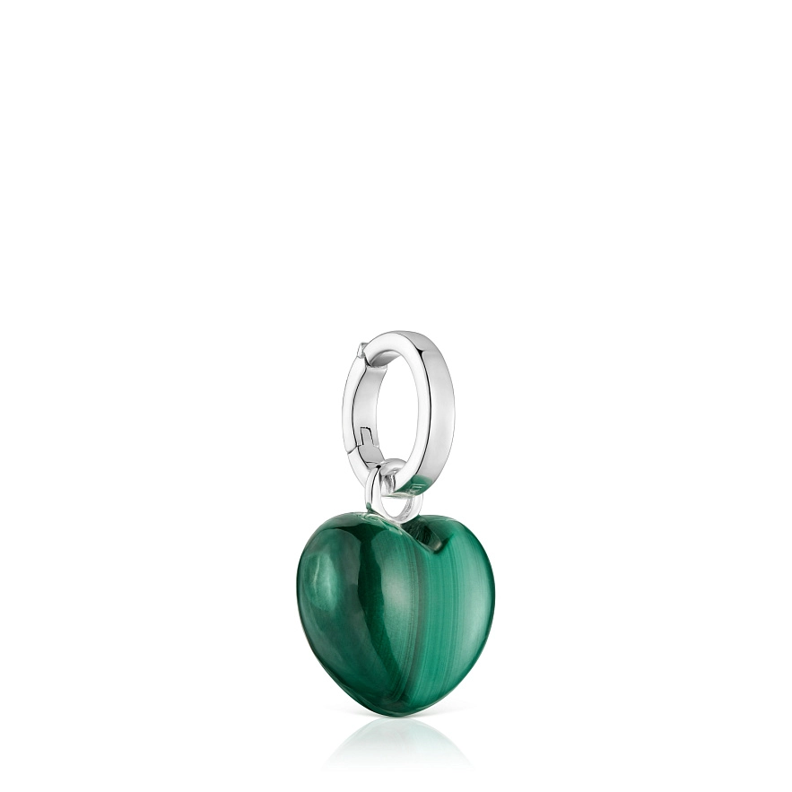Кулон TOUS Flechazo зі срібла 925 проби та огранованим серцем з малахіту. Розмір підвіски: 12 мм. Ланцюжок до цього виробу не входить.