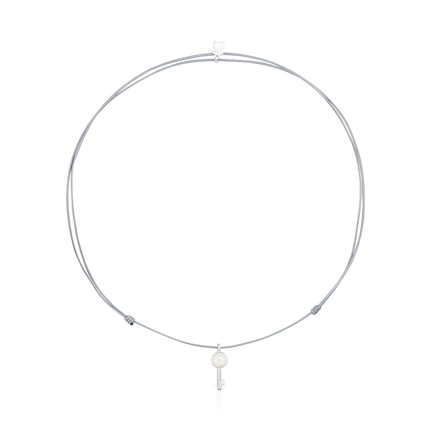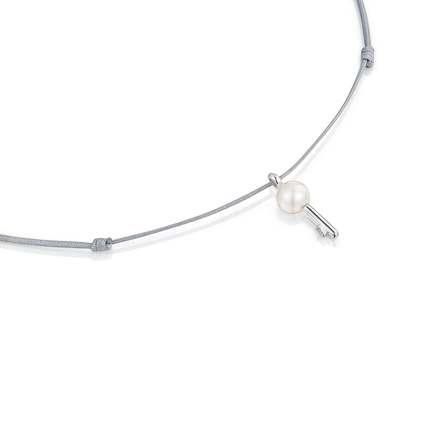 Нейлонове намисто TOUS Unlock сірого кольору з прісноводною культивованою перлиною, мотивом ключа та сріблом 925 проби. Розмір підвіски: 20 мм. Довжина намиста: 70 см. Застібка-слайдер.