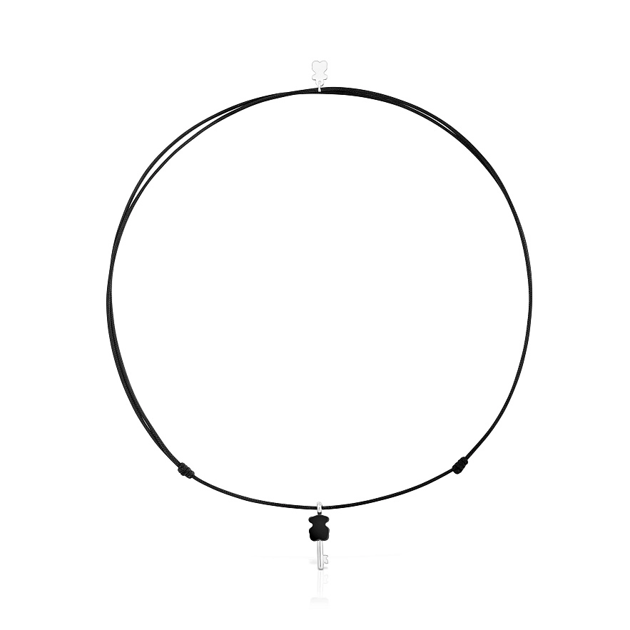 Нейлонове намисто TOUS Unlock чорного кольору з гранованим ведмедиком із оніксу та сріблом 925 проби. Розмір підвіски: 20 мм. Довжина намиста: 70 см. Застібка-слайдер.