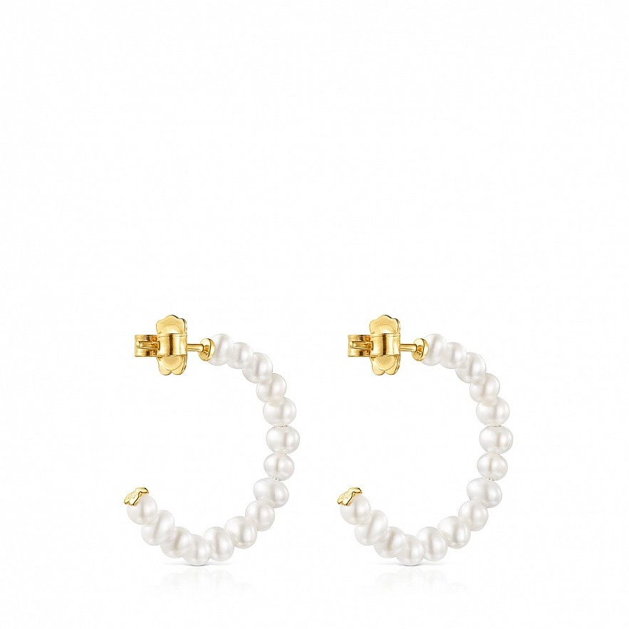 Сережки TOUS Gloss зі срібла 925 проби з покриттям Vermeil з культивованими прісноводними перлами розміром 4-4,5 мм. Діаметр: 20 мм. Застібка - пусет. Vermeil : срібло з покриттям золота 18 карат.
