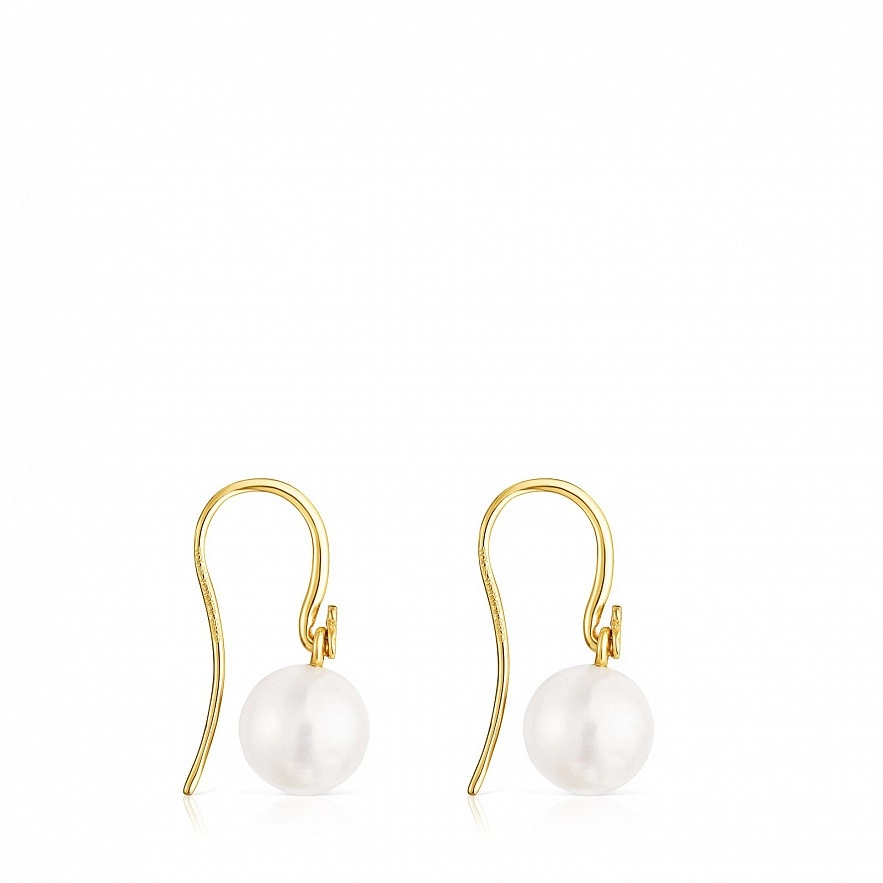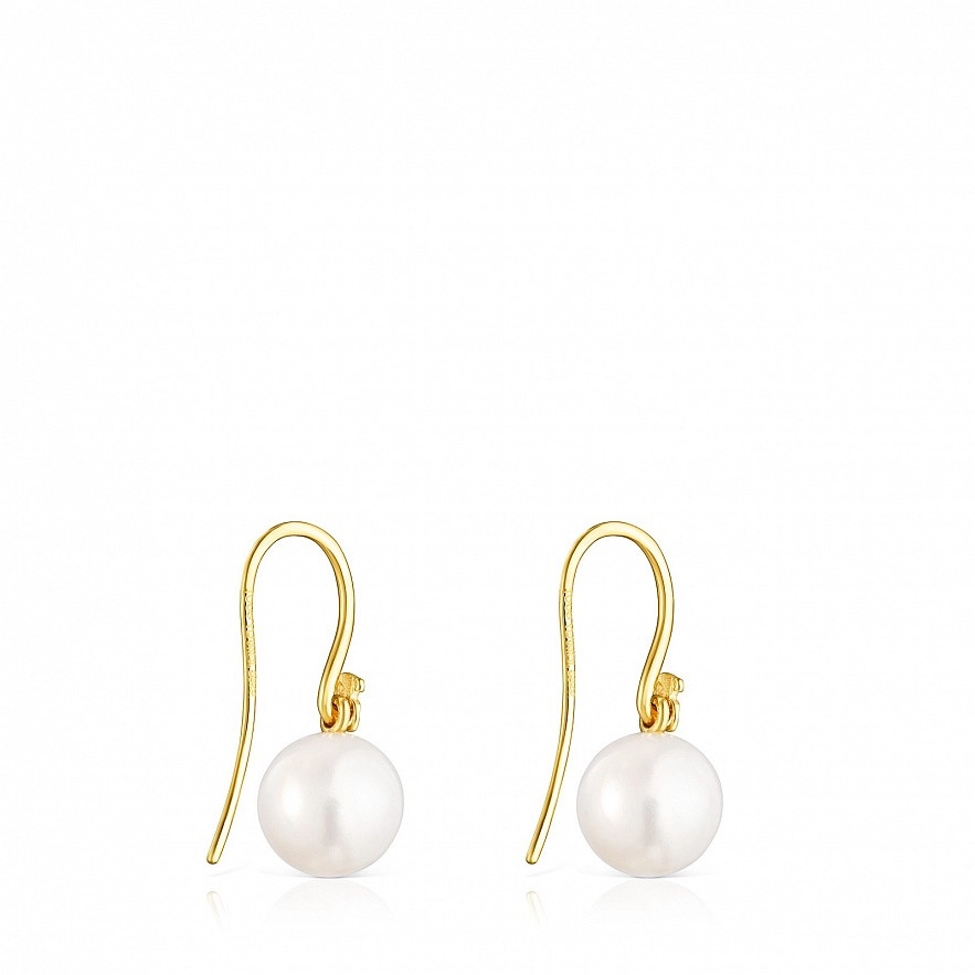 Сережки TOUS Gloss зі срібла 925 проби з покриттям Vermeil з круглою культивованою прісноводною перлиною розміром 10 мм. Застібка на гачок.Vermeil : срібло з покриттям золота 18 карат.
