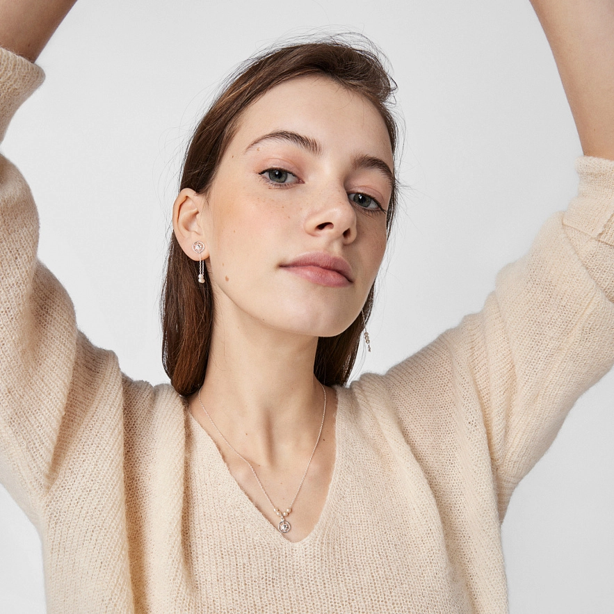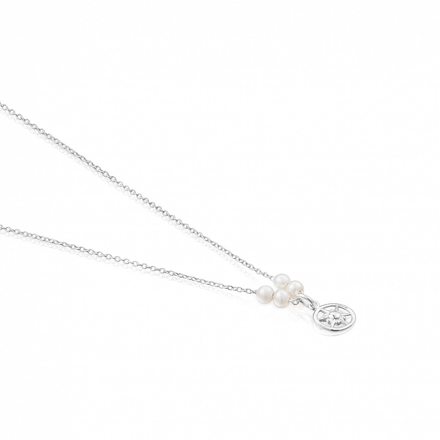 Комплект TOUS Magic Nature із стерлінгового срібла, що складається з намиста з чотирма круглими прісноводними культивованими перлинами діаметром 4 мм і кулоном із сонцем діаметром 9 мм. Довжина намиста: 45 см, кільце 40 см + довгі сережки з трьома круглими прісноводними культивованими перлинами розміром 3,5 мм, сонцем 9 мм і зіркою 6 мм. Закриття під тиском. Довжина ланцюжка: 45 мм. Техніка виготовлення: лиття