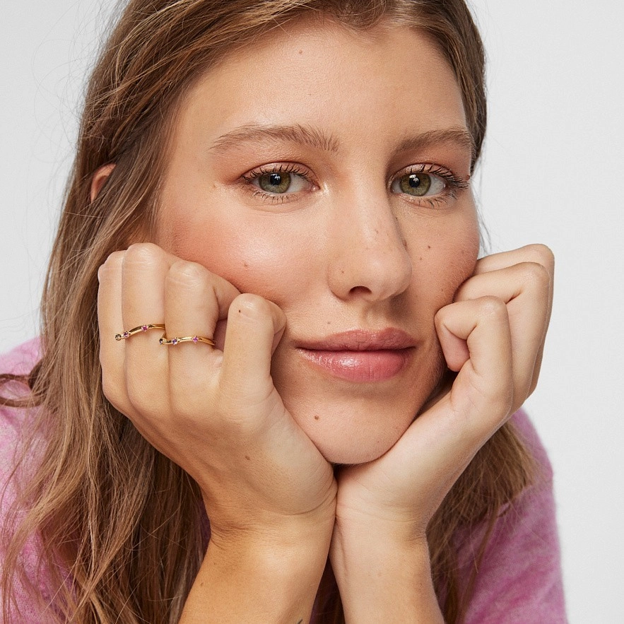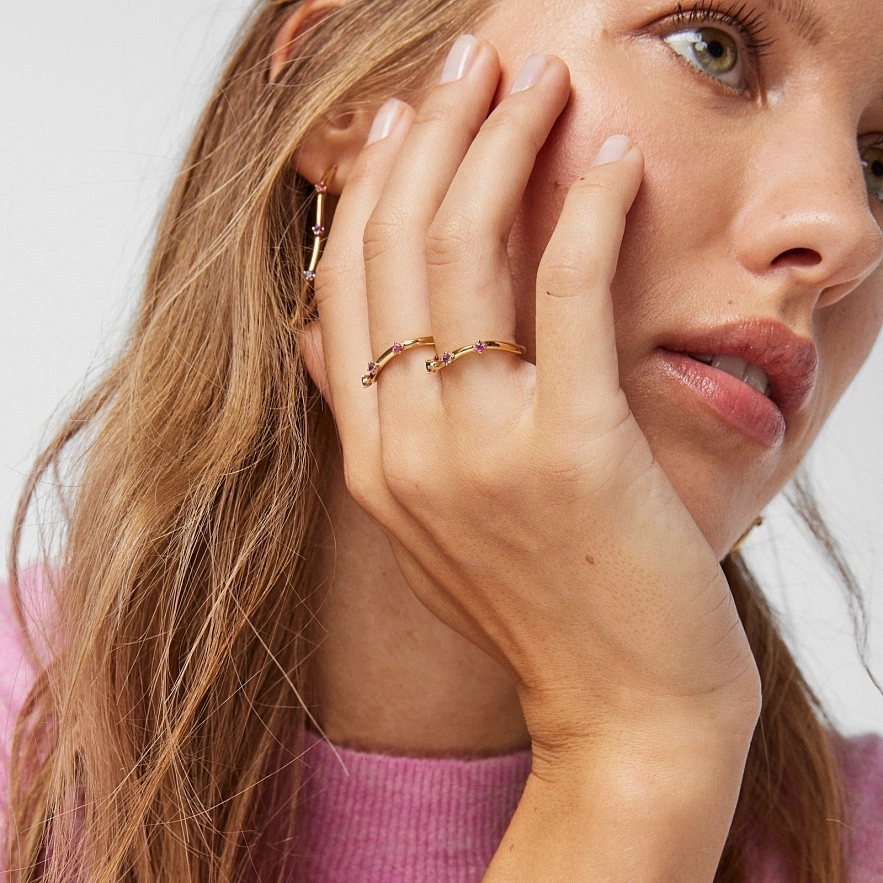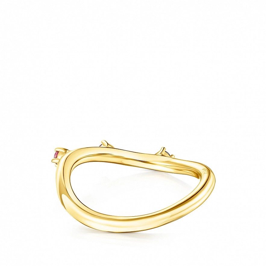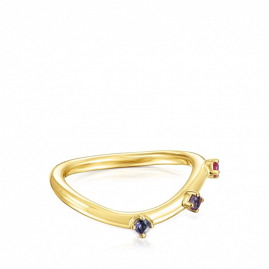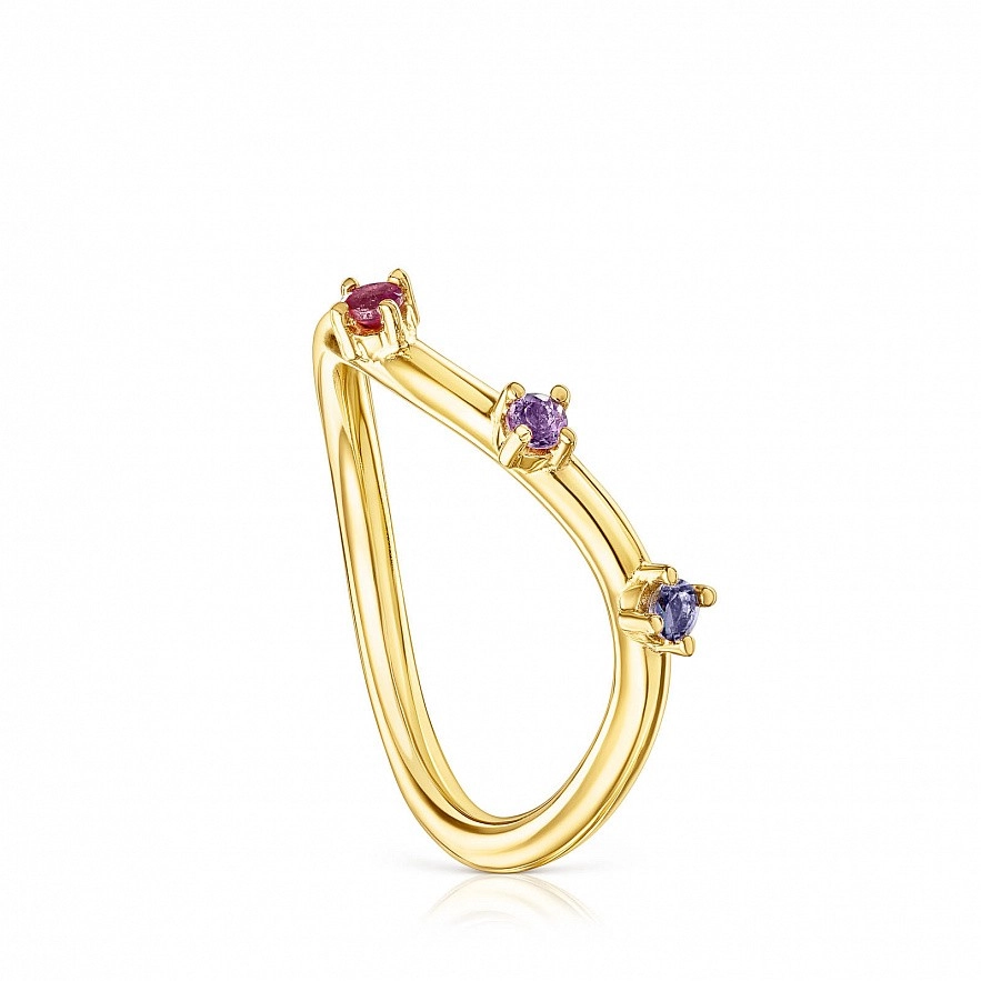 Каблучка TOUS Magic Nature зі срібла 925 проби з покриттям Vermeil з аметистом 2 мм, іолітом та рубіном. Vermeil : срібло з покриттям золота 18 карат.