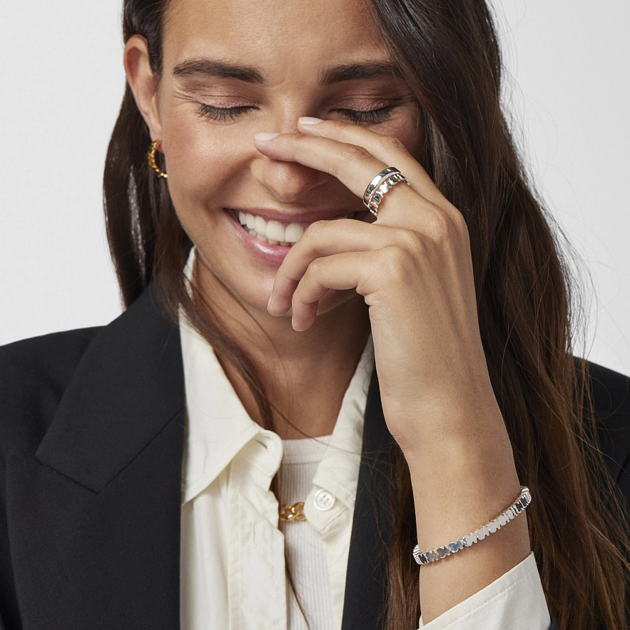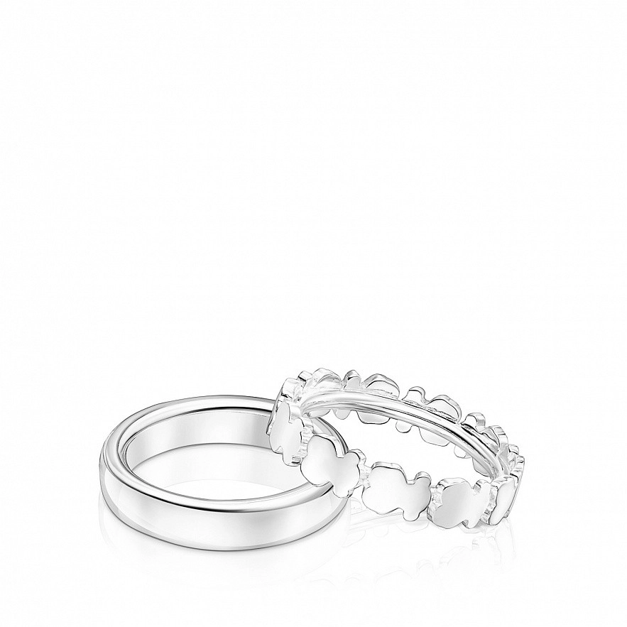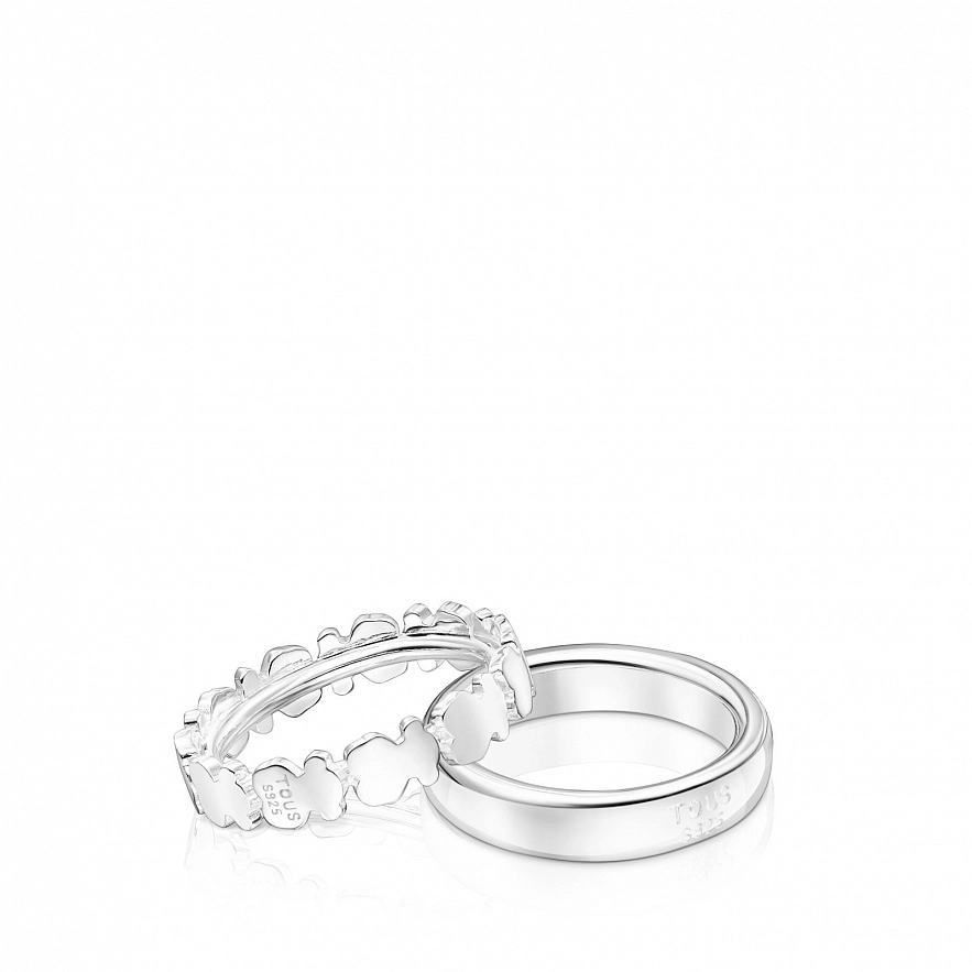 Набір з двох каблучок TOUS Straight зі срібла 925 проби, одна каблучка завширшки 2,6 мм, а друга - з ведмедиками розміром 5,5 мм.