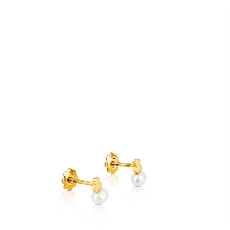 Сережки TOUS Puppies з 18-каратного жовтого золота та культивованих перлин розміром 3,5 мм.