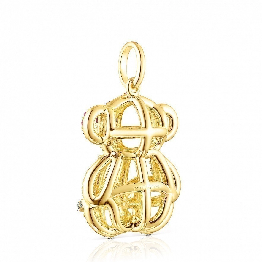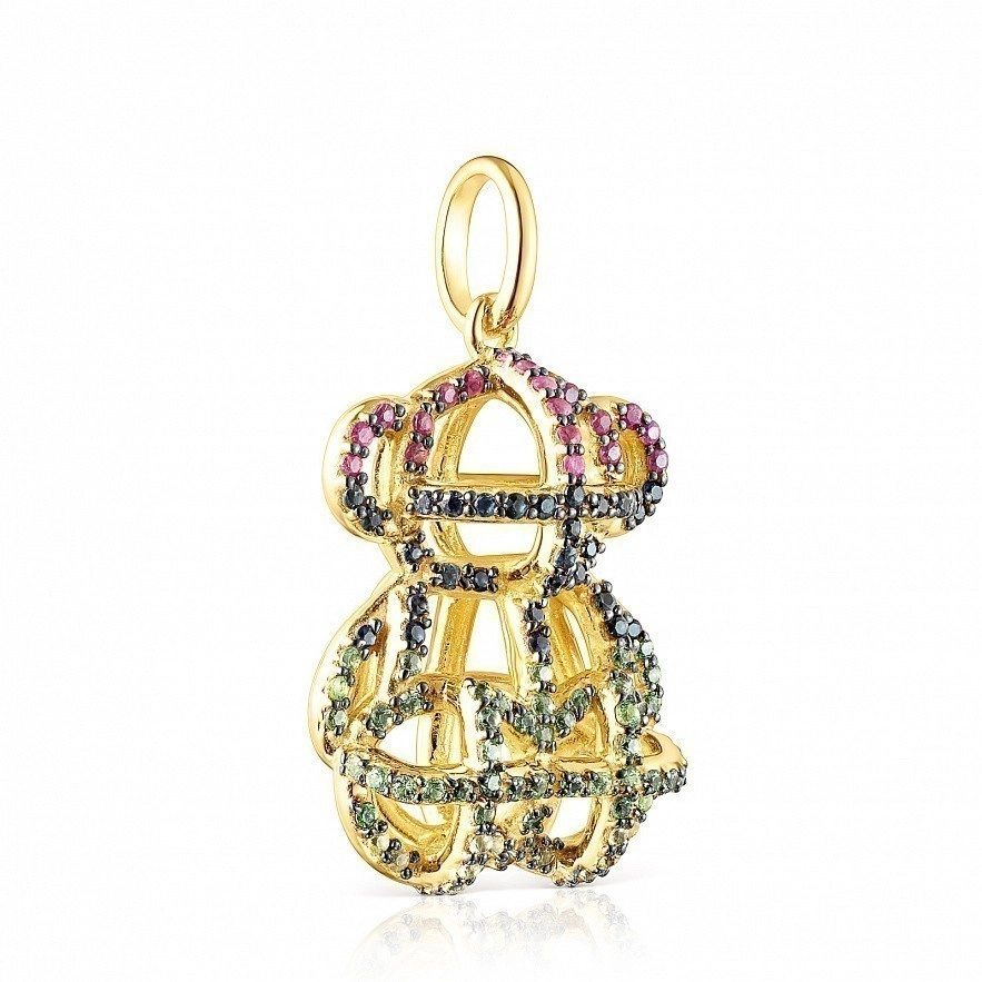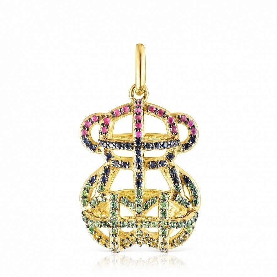Великий кулон TOUS Costura зі срібла 925 проби з покриттям Vermeil з блакитними і жовтими сапфірами, цаворитами і рубінами. Розмір підвіски: 2,5 см. Vermeil : срібло з покриттям золота 18 карат.