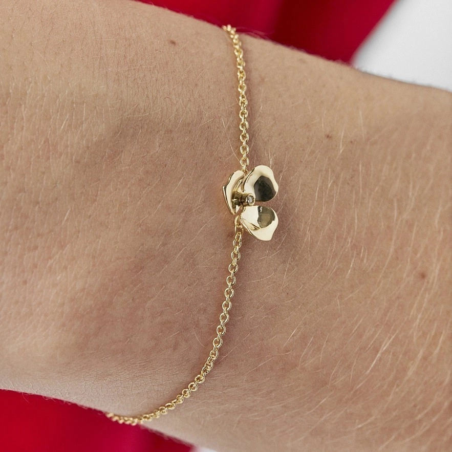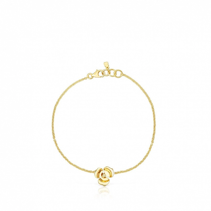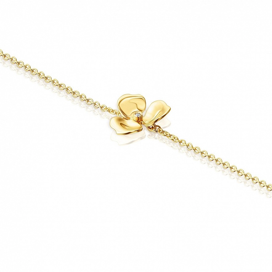 Браслет TOUS Fragile Nature із жовтого золота 18 карат з діамантом 0,005карат, H/SI. Розмір квітки: 1см. Довжина браслета: 17,5см. Техніка виготовлення: лиття.