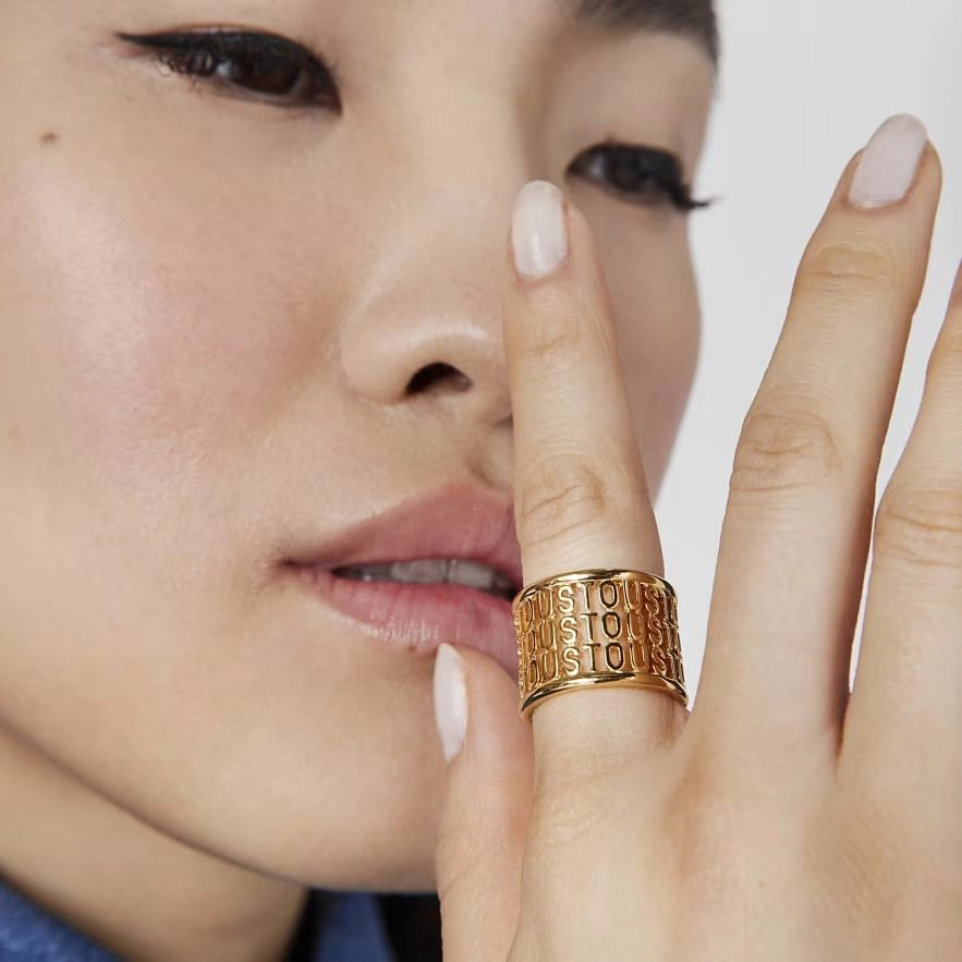 Каблучка TOUS Logo зі срібла 925 проби з покриттям Vermeil . Ширина каблучки: 15 мм. Товщина каблучки: 1,7 мм.