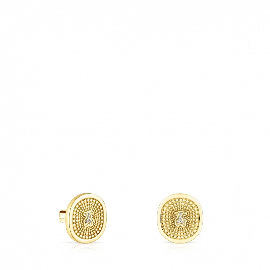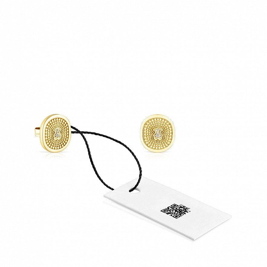 Сережки TOUS Oursin з 18-каратного золота з діамантами 0,02 карата на внутрішній частині окружності, в середині ведмедя. Розмір сережки: 12 мм. Розмір ведмедя: 4 мм. Якість діамантів: H/SI. Застібка-пусет. Колекція Oursin із золота з діамантами гарантує повну простежуваність усіх матеріалів, а також місця їх виробництва, і має документацію, що це підтверджує.