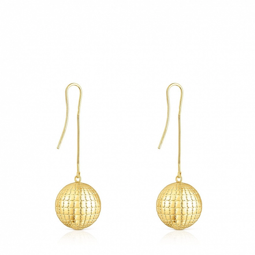 Сережки TOUS St. Tropez Disco зі срібла 925 проби з покриттям Vermeil з гравіюванням ведмедів. Діаметр: 25 мм. Довжина: 49мм.