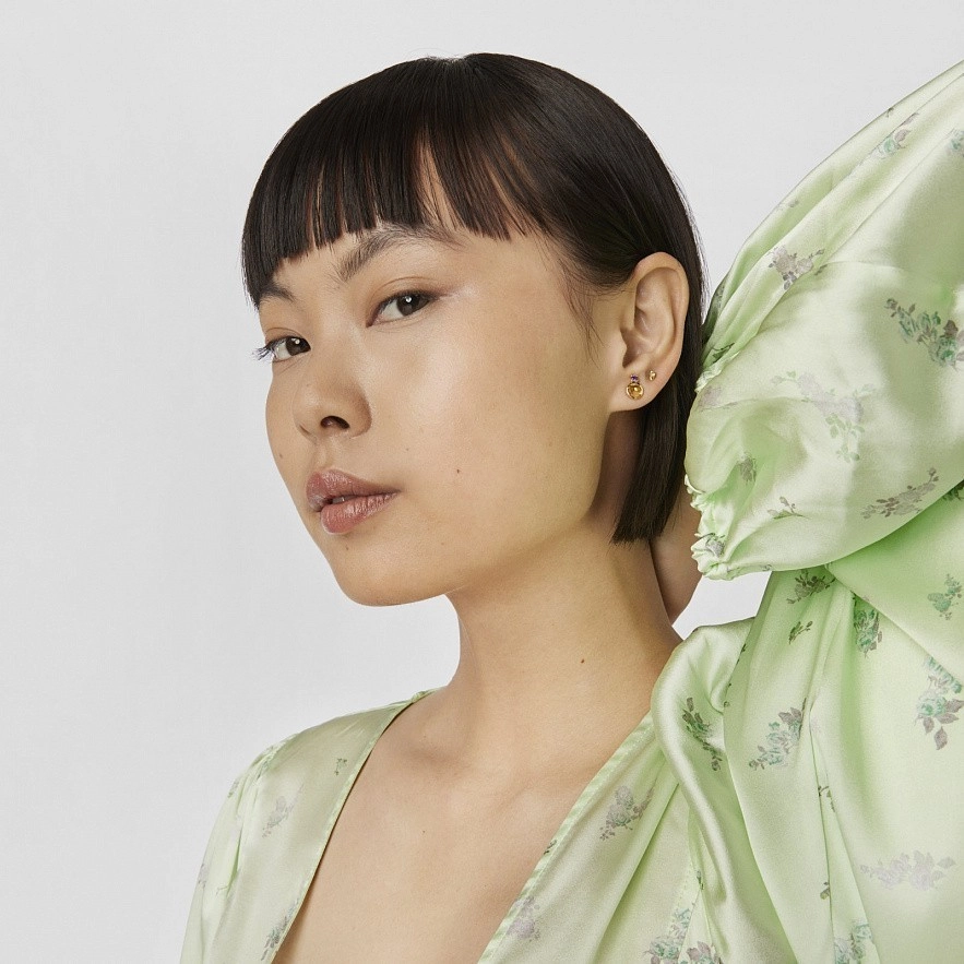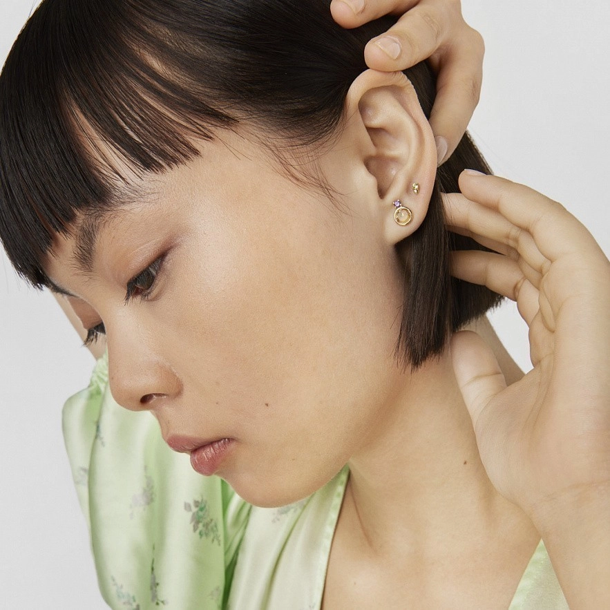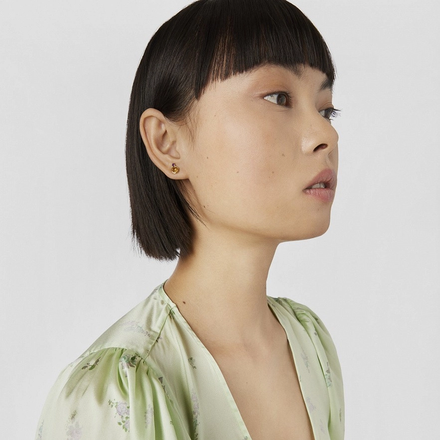 Сережки TOUS Virtual Garden із золота 750 проби з цитрином 6 мм та аметистом 2,5 мм. Застібка-пусет.