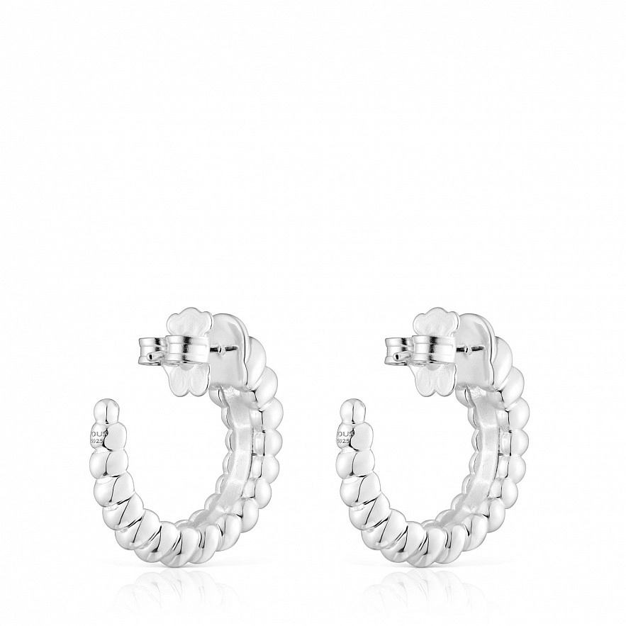 Сережки-обручі TOUS Virtual Garden зі срібла 925 проби, що імітують будову гусениці. Діаметр: 15 мм. Застібка-пусет.