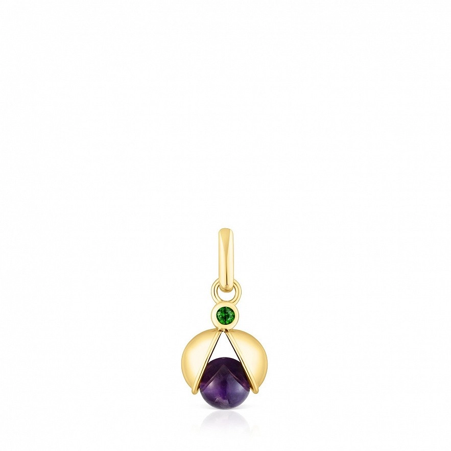 Підвіска TOUS Virtual Garden зі срібла 925 проби з покриттям Vermeil з аметистом розміром 5 мм, одним 2-мм хромованим діопсидом і деталлю, що імітує форму комахи. Розмір: 7 мм. Цей товар не включає ланцюжок. Vermeil : срібло з покриттям золота 18 карат.