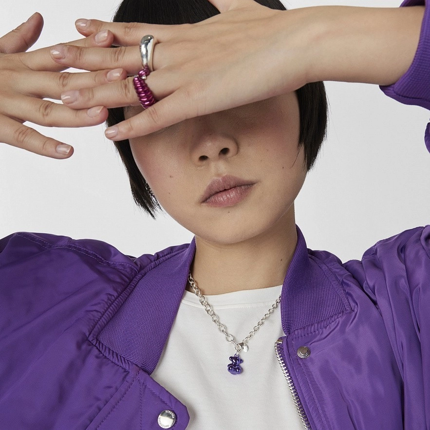 Кулон TOUS Bold Bear із бузкової сталі та кільця зі срібла. Розмір ведмедика: 16 мм. Цей товар не включає ланцюжок.
