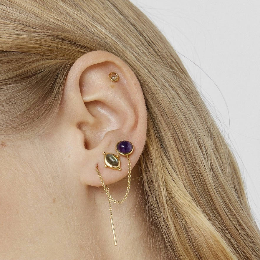 Пірсинг TOUS Plump з IP-сталі золотистого кольору та лабрадориту. Діаметр кільця: 3,3 мм. Розмір дорогоцінного каменю: 2 мм. Довжина стержня: 6 мм. Закручується гвинтом.