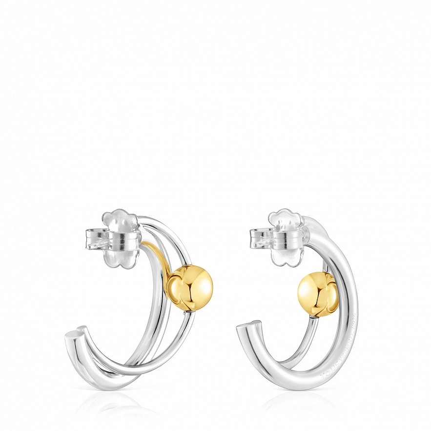 Подвійні сережки-кільця TOUS зі срібла та срібної вермелі розміром 24мм із кулькою розміром 7мм і вигравіруваним ведмедиком розміром 3мм.