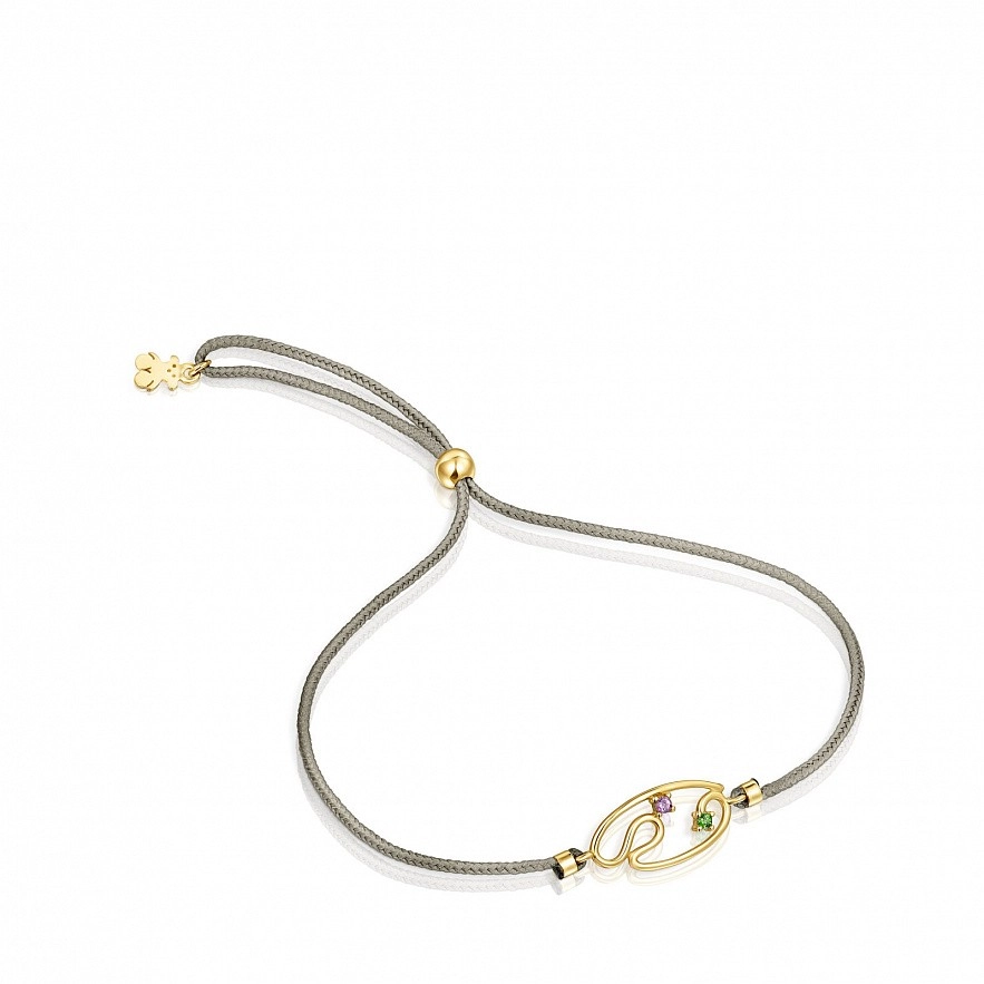 Нейлоновий браслет TOUS Tsuri з золота 750 проби з дорогоцінними каменями, закріпленими навколо силуету овалу. Камені: аметист і діопсид хрому. Розмір дорогоцінних каменів: 1,5 мм. Розмір овалу: 14,5 мм. Застібка-слайдер.