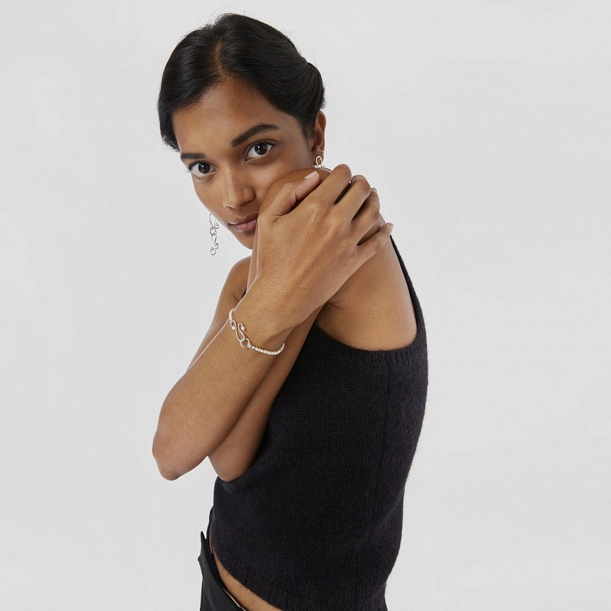 Браслет з культивованих перлин TOUS Tsuri зі срібним мотивом із двома культивованими перлинами. Розмір культивованих перлин: 3-3,5 мм. Розмір мотиву: 22мм. Довжина браслета: 19см. Застібка на гачок.