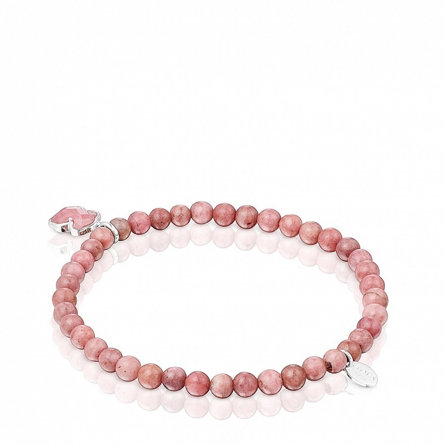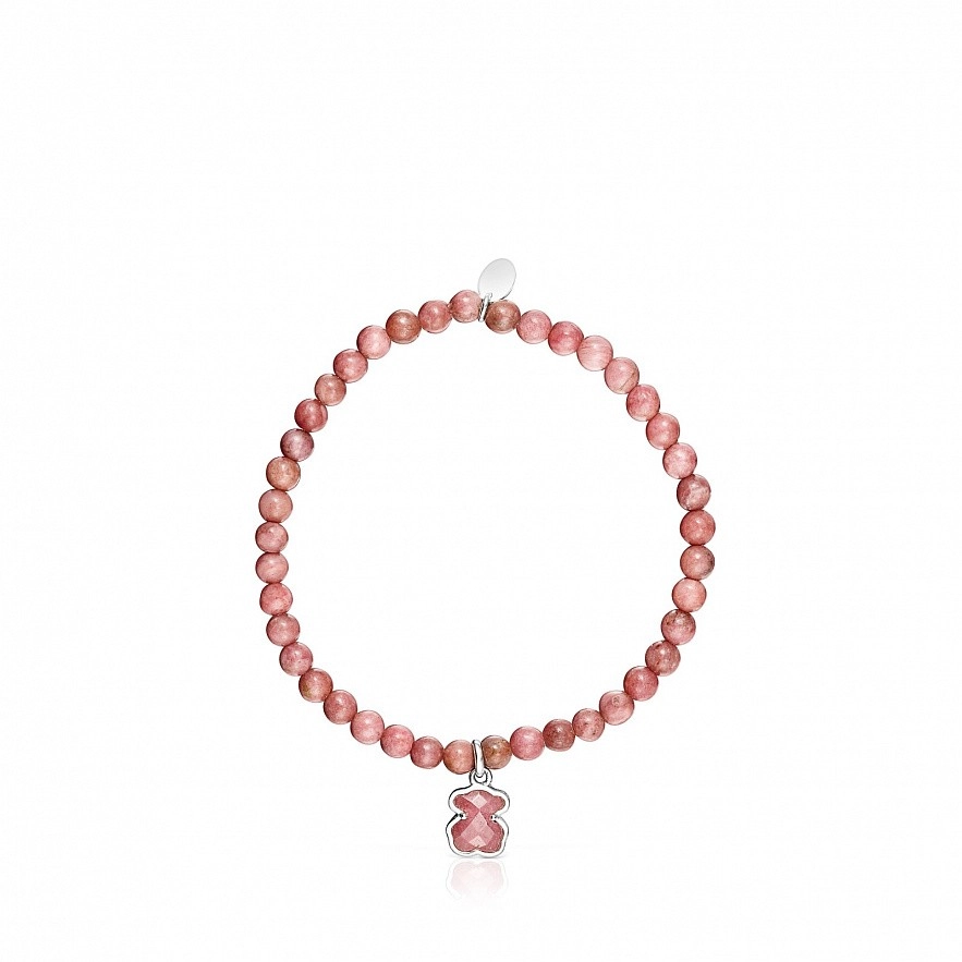 Кольоровий браслет TOUS Icon Color зі срібла 925 проби з гладкими родонітовими кульками розміром ~4 мм і 9 мм підвіска з родонітовим ведмедиком.