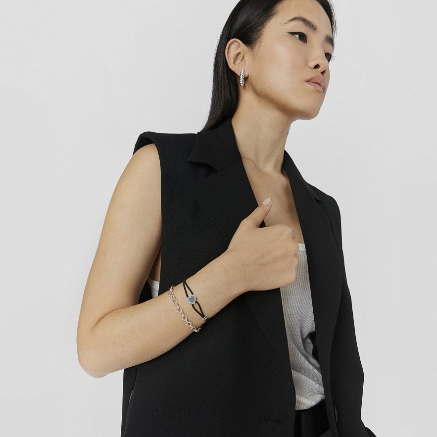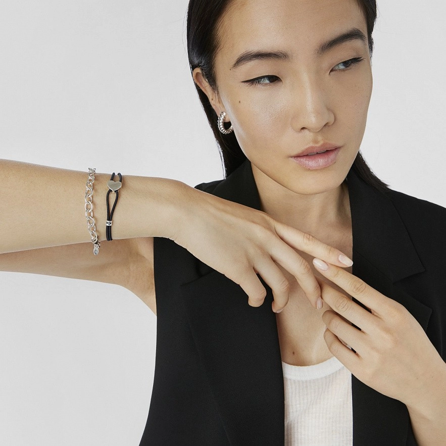 Чорний еластичний браслет TOUS Sweet Dolls зі срібним сердечком. Розмір підвіски: 11 х 12 мм. Довжина браслета: 17 см.