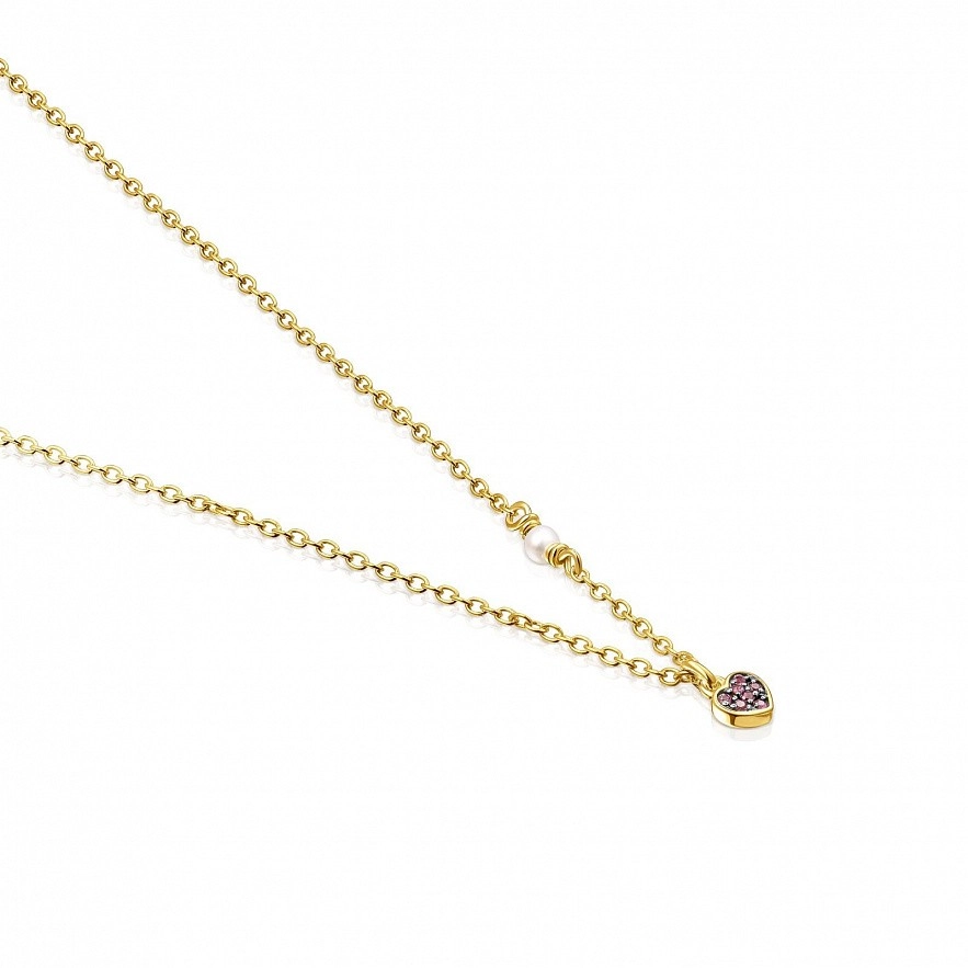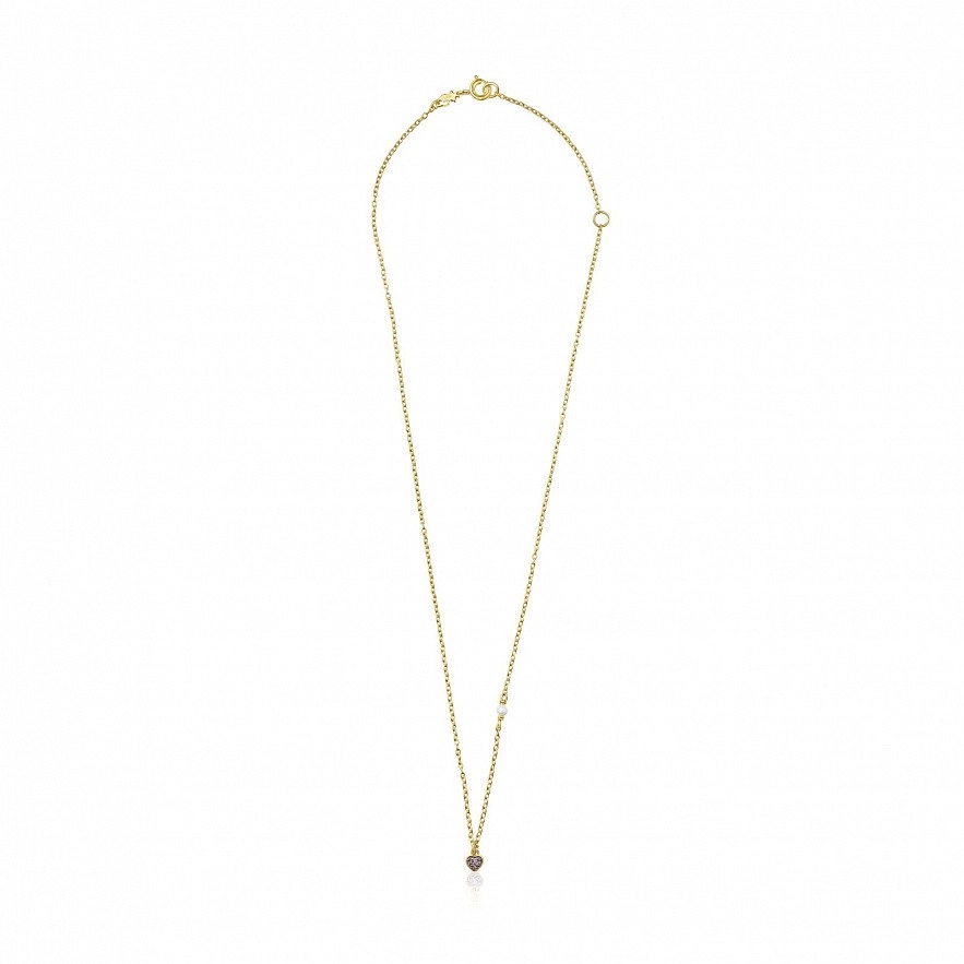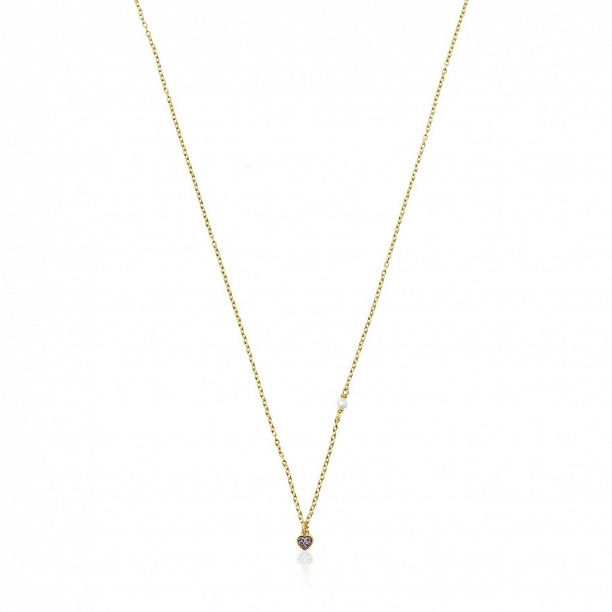 Ланцюг TOUS New Motif зі срібла 925 проби з покриттям Vermeil з мотивом серця з аметистів 4мм і перлиною Ø3мм. Відстань між мотивом і перлиною: 55мм. Загальна довжина ланцюга: 45см.