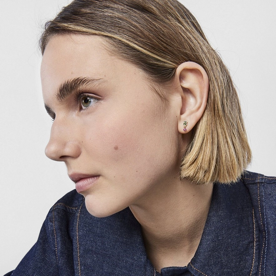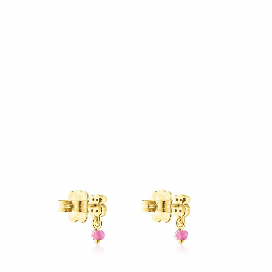TOUS New Motif сережки зі срібла 925 проби з покриттям Vermeil з мотивом ведмедя з хромованого діопсиду та обробленими рубіновими деталями. Застібка-пусет. Розмір ведмедика: 4,6мм х 3,8мм.