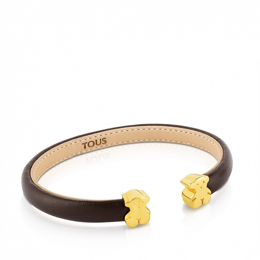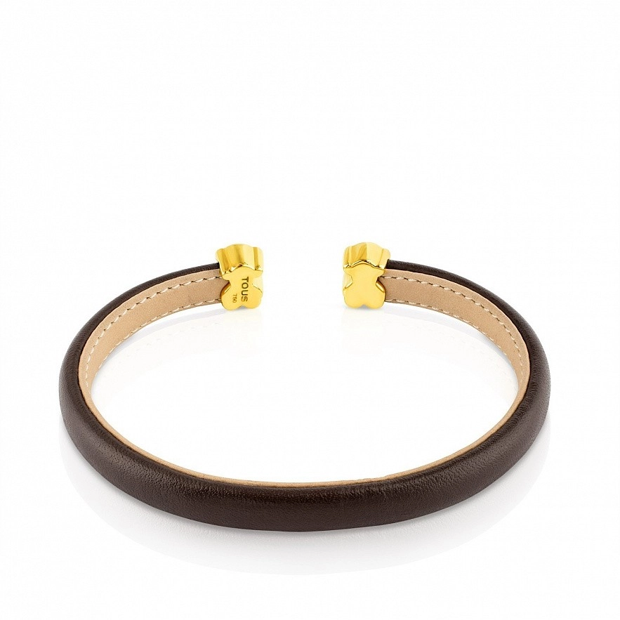 Браслет TOUS Sweet Dolls з жовтого золота 750 проби та шкіри коричневого кольору. Розмір: 8 мм.
