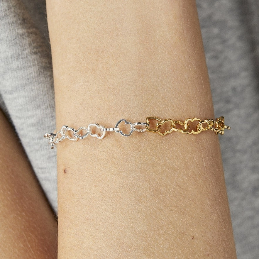 Браслет TOUS Carrusel зі срібла 925 проби з покриттям Vermeil з кільцями у формі ведмежат у різних розмірах. Довжина: 18.5 см. Vermeil : срібло з покриттям золота 18 карат.