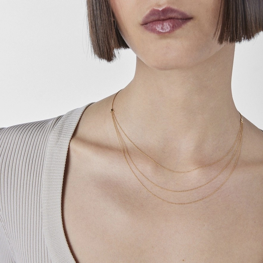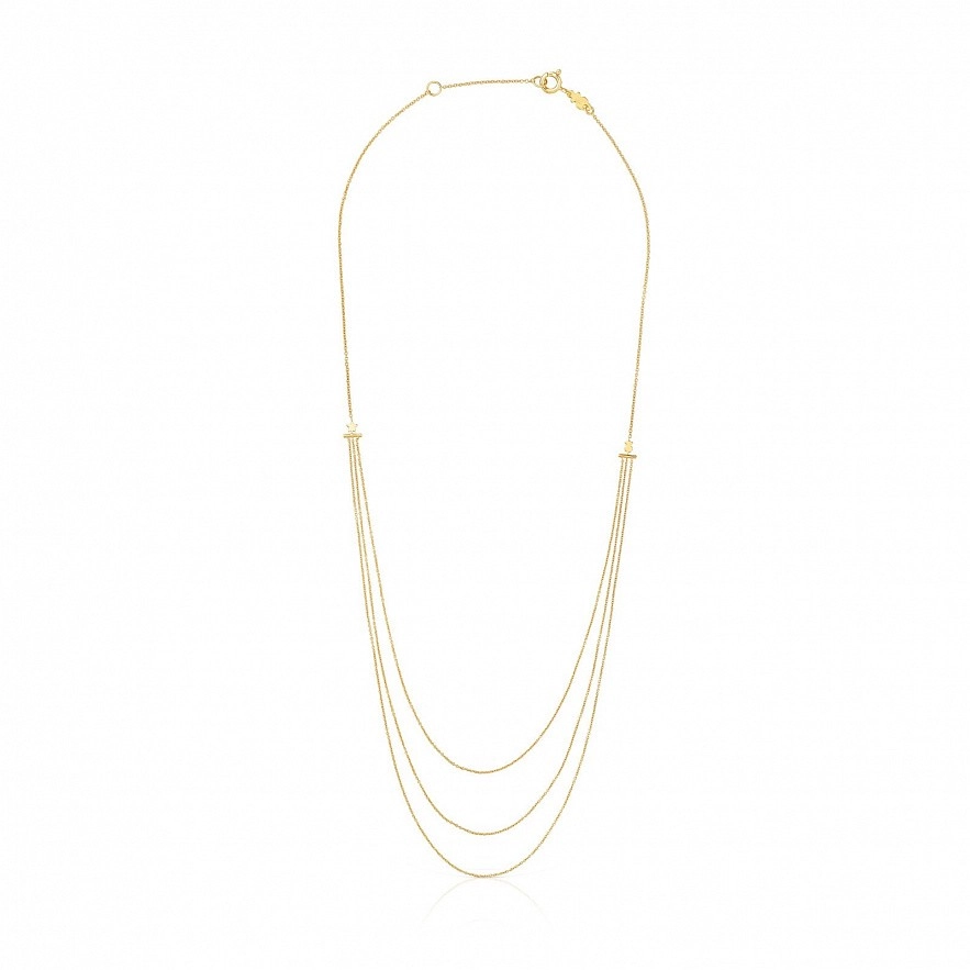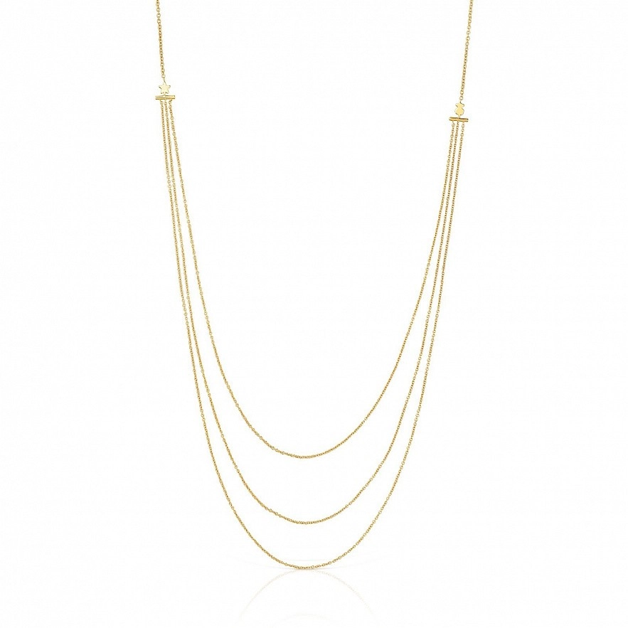 Ланцюг TOUS Cool Joy із жовтого золота 18 карат з потрійним ланцюжком із підвісками у формі ведмедика та зірки 3мм . Довжина ланцюгів: 20см, 23,5см і 25,5см. Загальна довжина ланцюга: 45см.