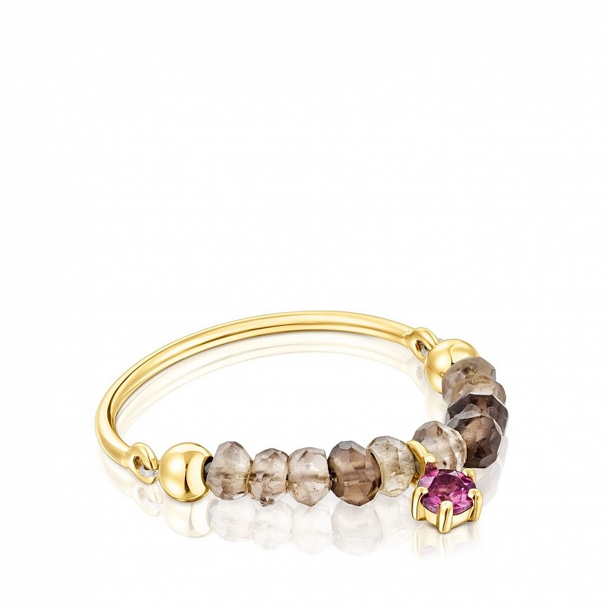 TOUS Cool Joy каблучка з 18-каратного золота з димчастим кварцем і родолітом 3-4 мм. Товщина кільця: 1,2мм.