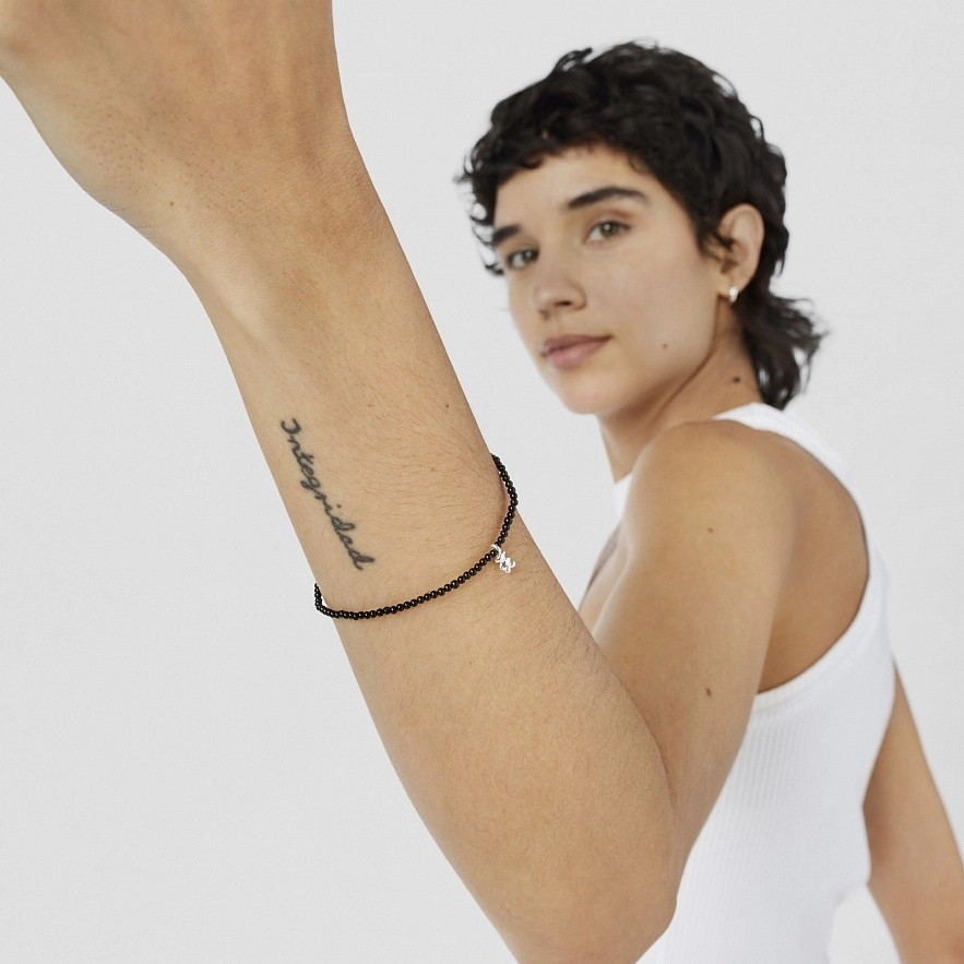 Еластичний браслет TOUS Bold Bear із мотивом підвіски з оніксом і срібним ведмедиком. Розмір дорогоцінного каменю: 2 мм. Розмір мотиву ведмедя: 5,5 мм. Довжина браслета: 16,5 см.