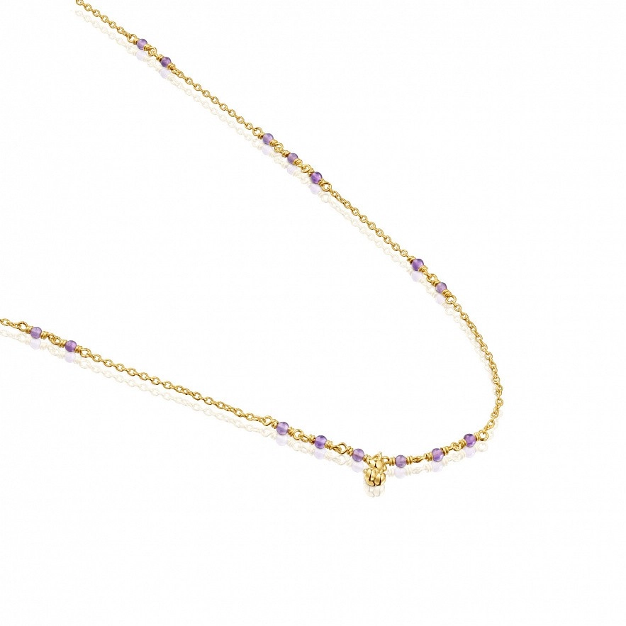Намисто TOUS Bold Bear зі срібла 925 проби з покриттям Vermeil та аметисту з кулоном у вигляді ведмедиказі срібла 925 проби з покриттям Vermeil . Розмір дорогоцінних каменів: 2-2,5мм. Розмір ведмедика: 5,35мм. Довжина намиста: 42-45см. Пружинна застібка-кільце.