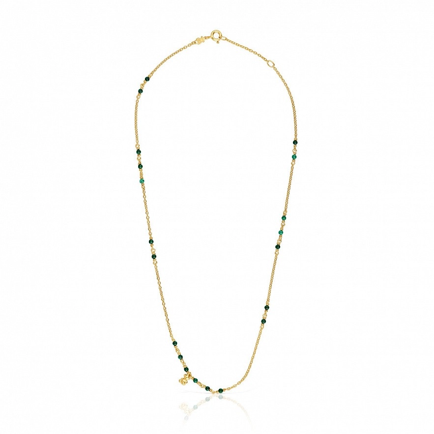 Намисто TOUS Bold Bear зі срібла 925 проби з покриттям Vermeil та малахіту з кулоном у вигляді ведмедика зі срібла 925 проби з покриттям Vermeil . Розмір дорогоцінних каменів: 2-2,5мм. Розмір ведмедика: 5,35мм. Довжина намиста: 42-45см. Пружинна застібка-кільце.