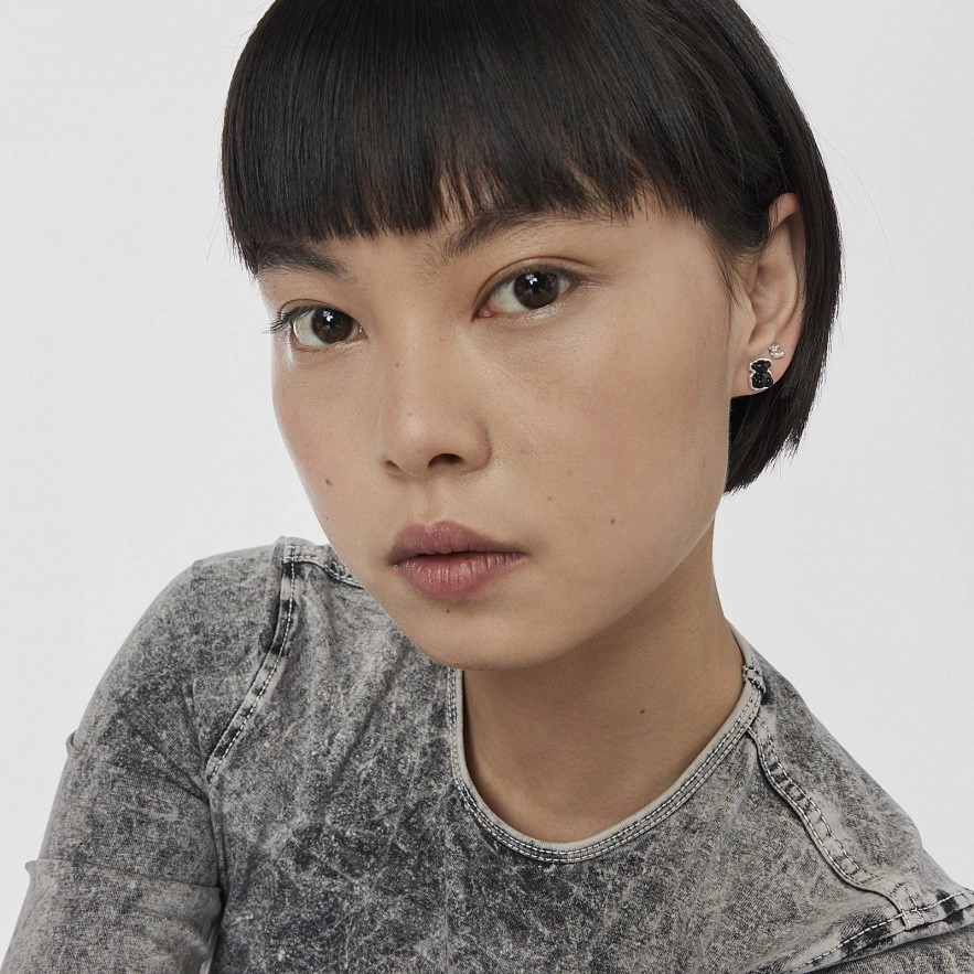 Сережки TOUS Bold Bear зі стерлінгового срібла з оніксом у формі ведмедя. Розмір мотиву ведмедя: 10 мм. Застібка-пусет.