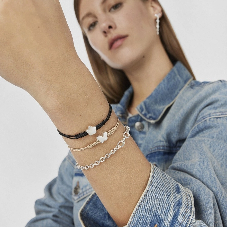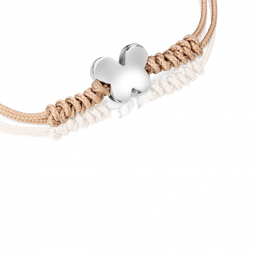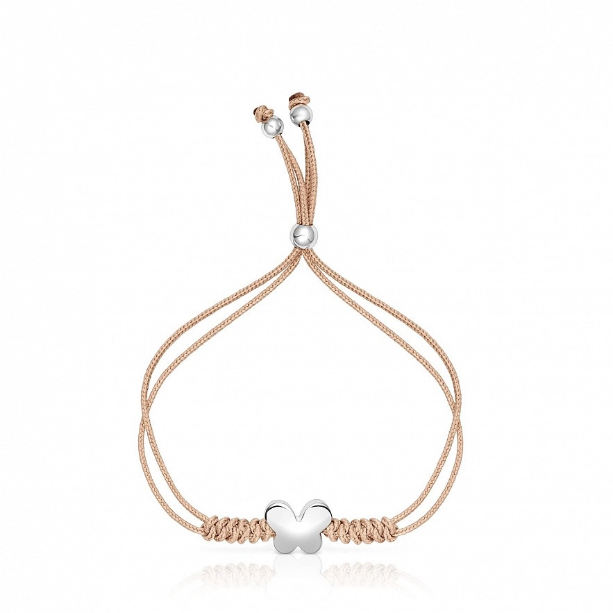Браслет TOUS Bold Motif з бежевого нейлону з мотивом метелика зі срібла 925 проби. Розмір підвіски: 9,5мм. Застібка-повзунок.