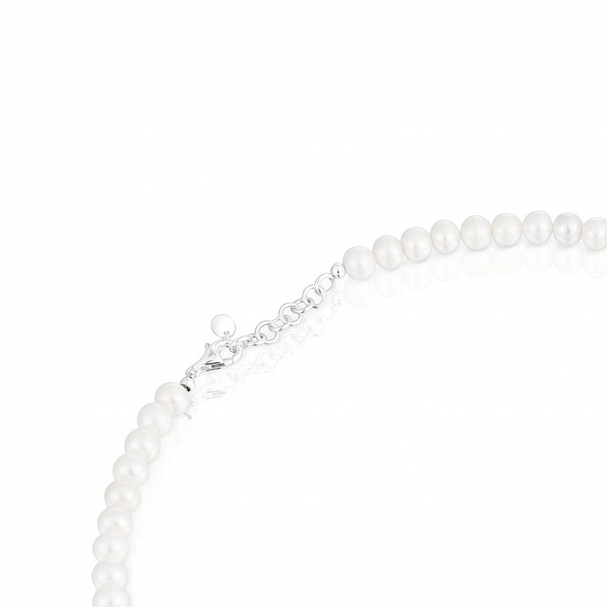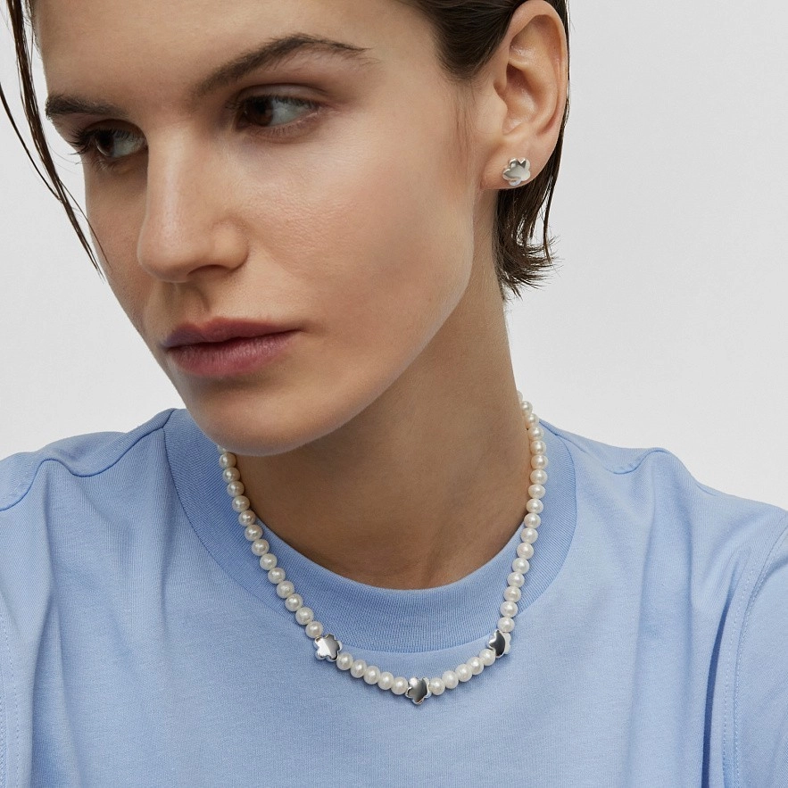 Намисто TOUS Bold Motif із культивованими перлами та трьома квітковими мотивами, що чергуються, зі срібла. Розмір культивованих перлин: 6-6,5 мм. Розмір квітки: 10,5 мм. Довжина намиста: 42-45 см. Пружинна застібка-кільце.