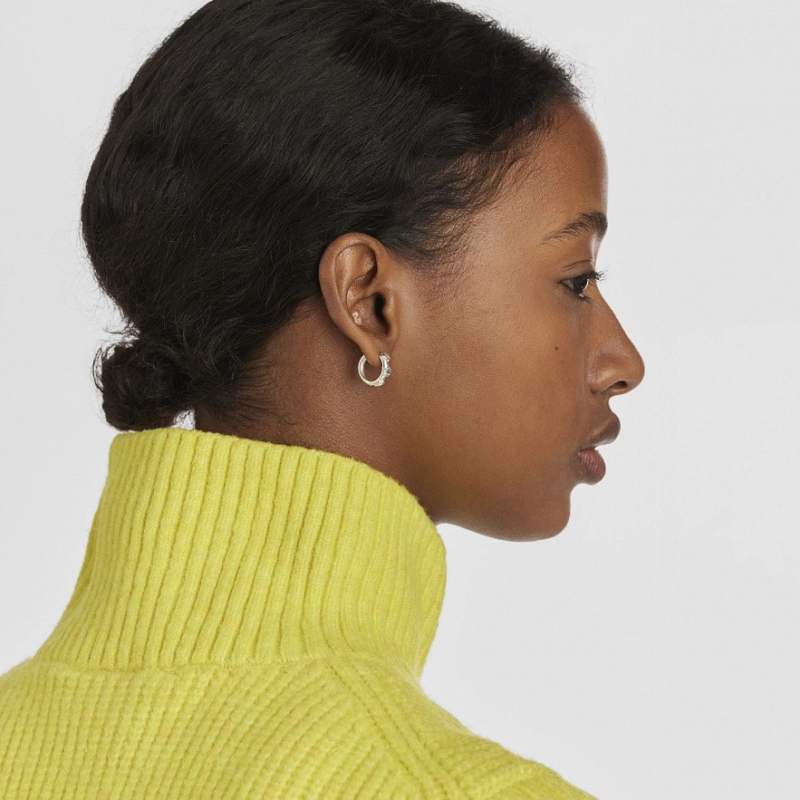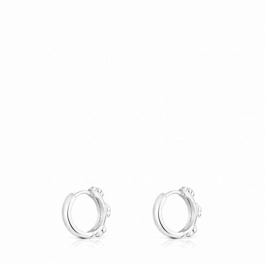 Сережки-кільця TOUS Bold Motif із стерлінгового срібла з трьома квітковими мотивами по обідку. Розмір малюнка: 4 мм. Діаметр кільця: 10 мм. Довжина болта: 6 мм.