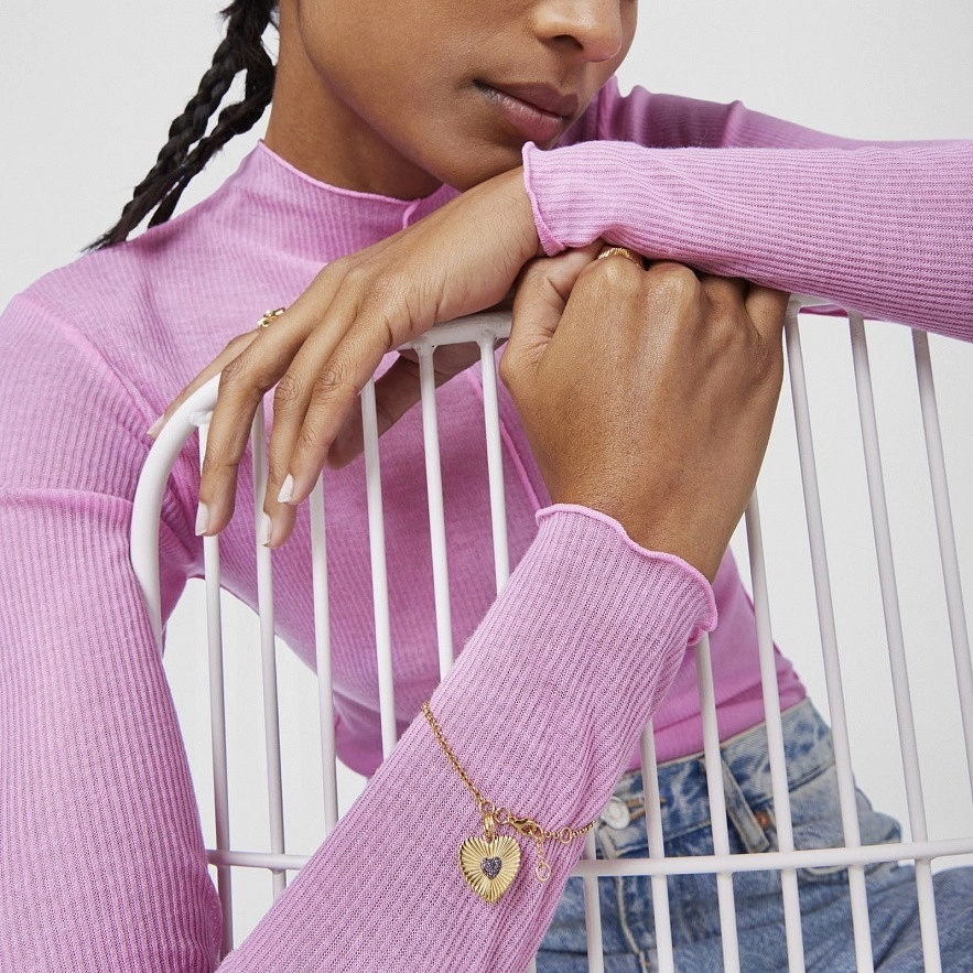 TOUS Iris Motif браслет зі срібла 925 проби з покриттям Vermeil та висячим сердечком із родолітом. Розмір підвіски: 18мм. Розмір брелока родоліт: 5,5мм. Довжина браслета: 18см. Застібка-лобстер.